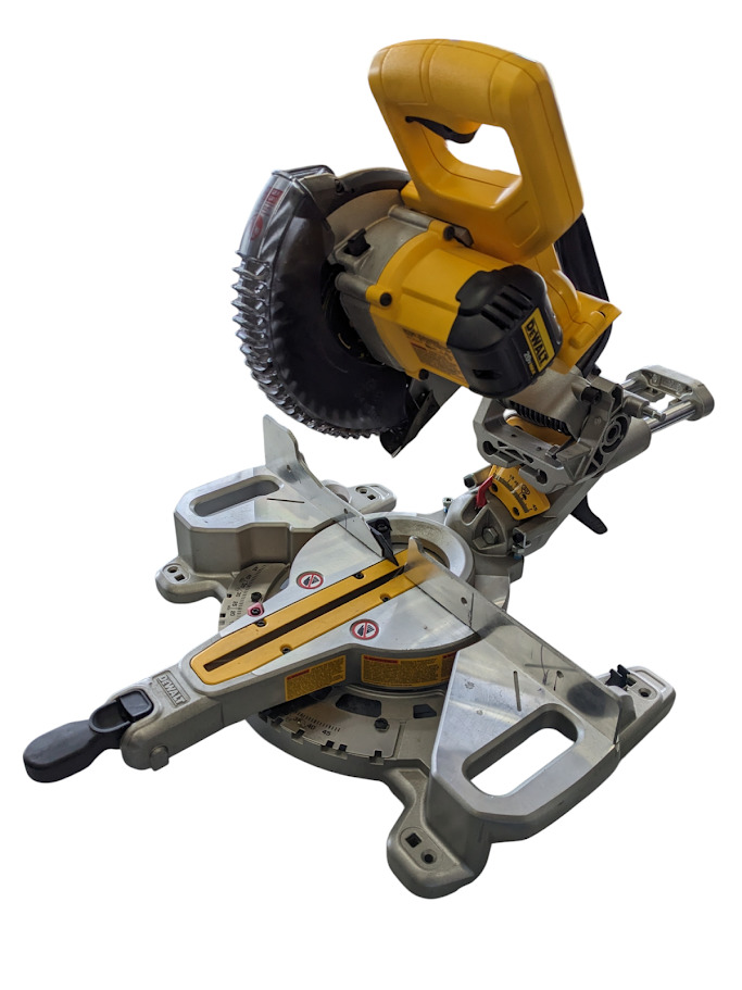 DeWalt DCS361 Sliding Miter Saw for sale is used but in great overall condition, miter saw has been cleaned, tested, and is ready for sale.
