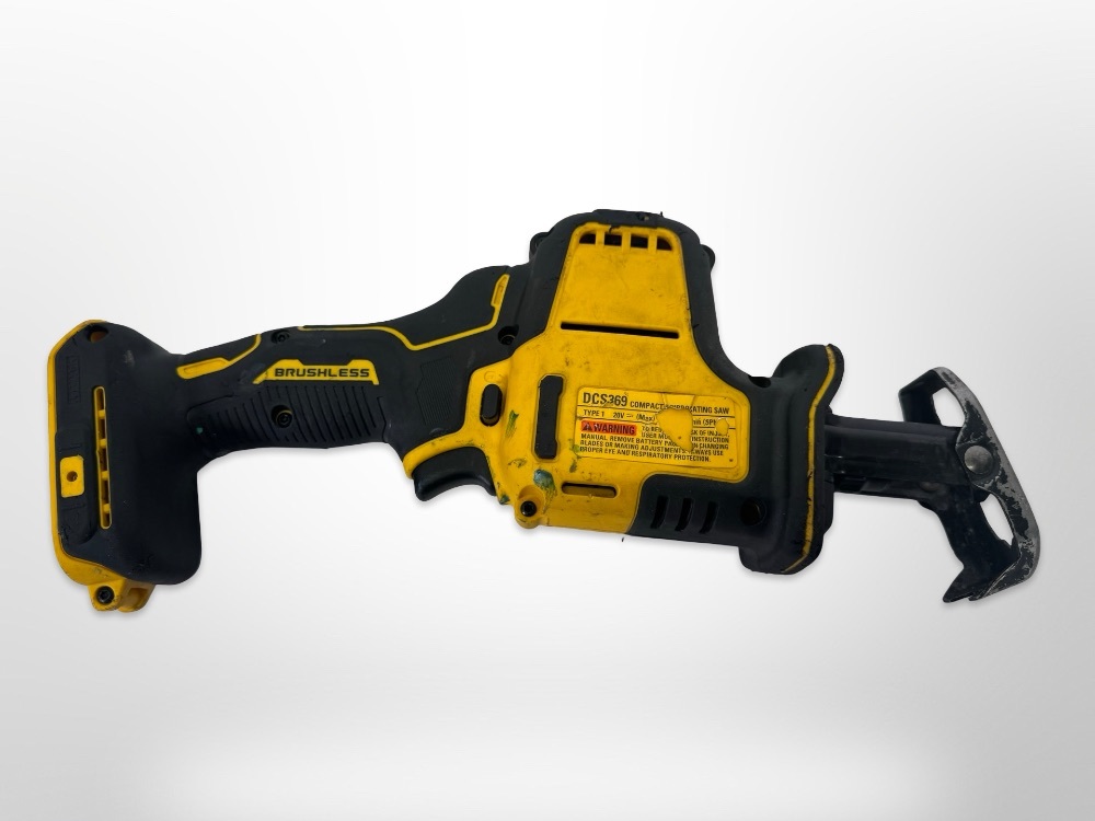 DeWalt DCS369 20V brushless compact reciprocating saw for sale is used but in great overall condition, reciprocating saw has been cleaned, fully tested, and is ready for sale.