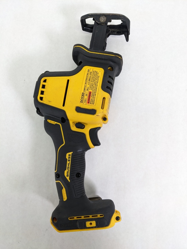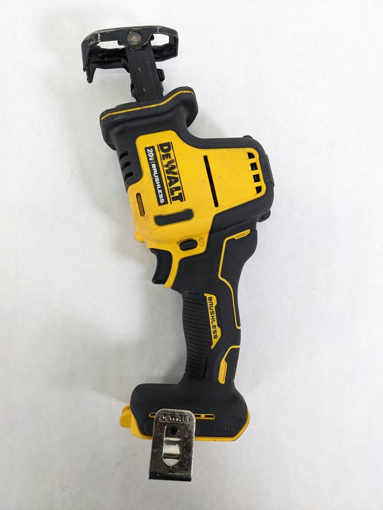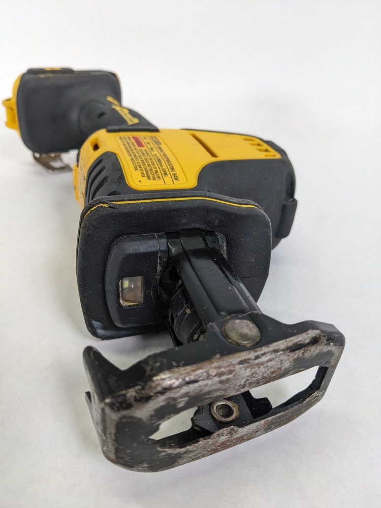The Dewalt compact recip saw for sale is used but in good overall condition showing minor wear consistent with normal use. It has been fully tested and is in perfect working order. Included is the tool only. No battery or charger is included.