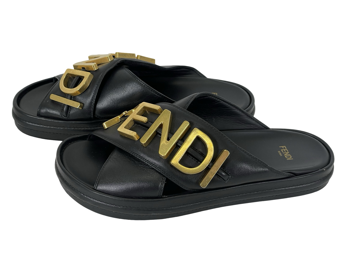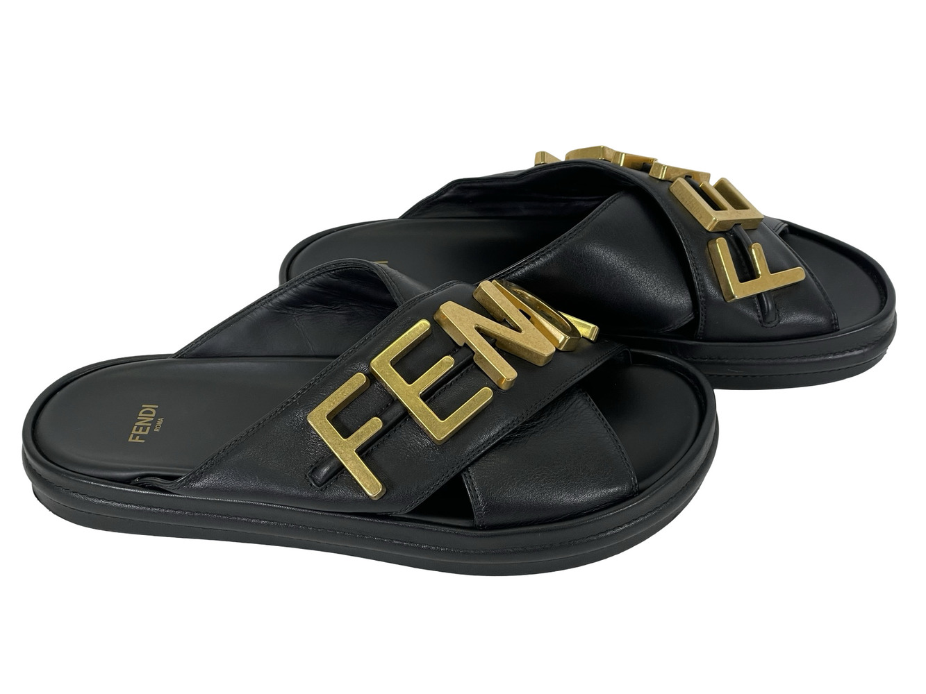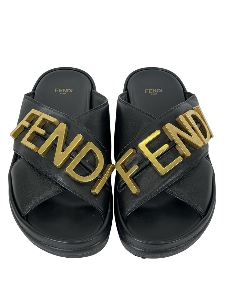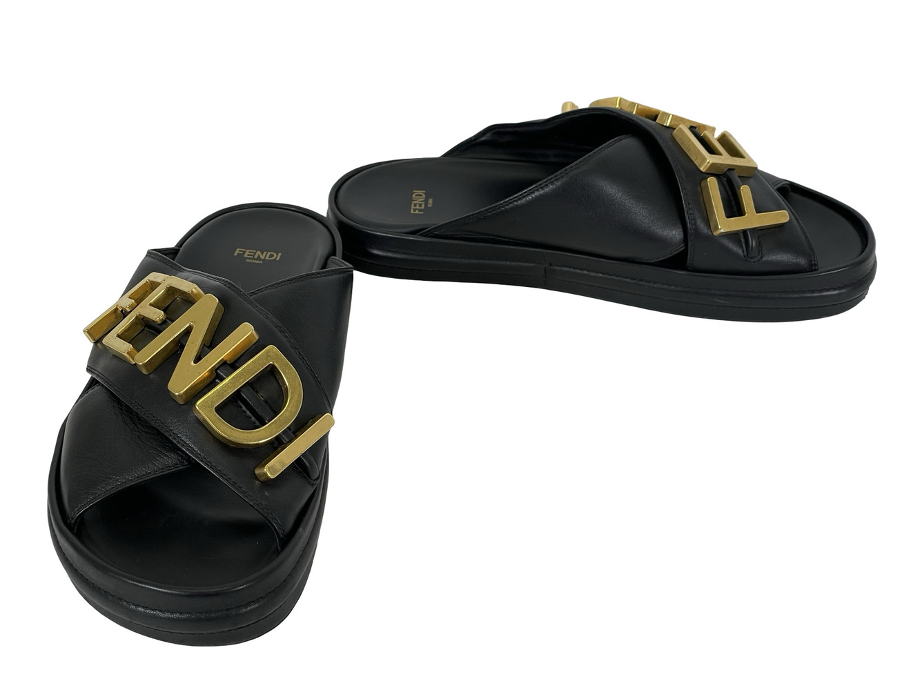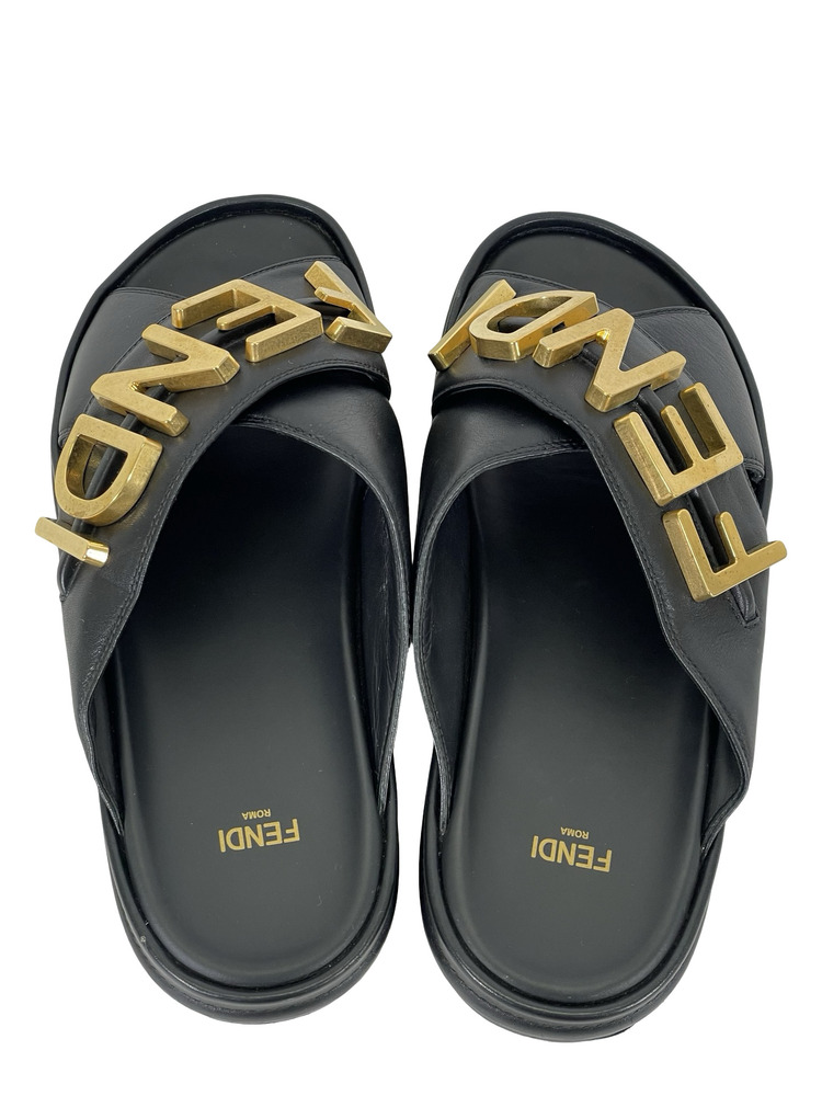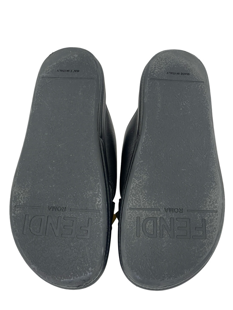 Fendi Vitello Fendigraphy Slide Sandals Leather Sz:38/7.5