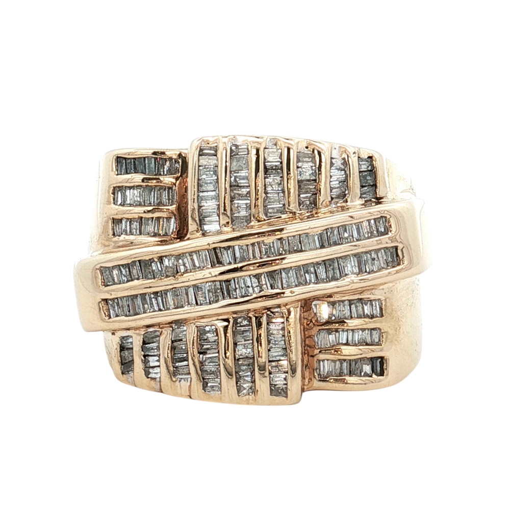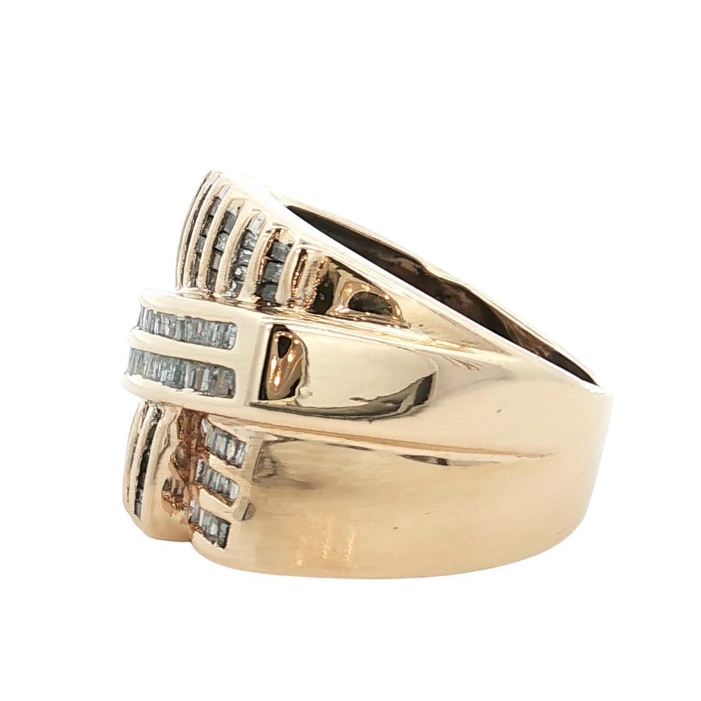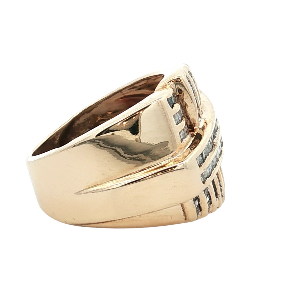 Gents 10K Yellow Gold 1-1/4CTW Baguette Diamond Cocktail Ring SZ:10, 13.6g