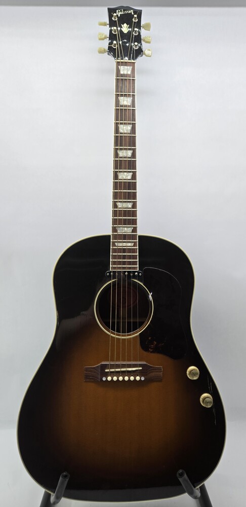 The Gibson J-160 E Acoustic Guitar, with a striking sunburst finish, is specifically crafted for right-handed players. This 6-string instrument features 20 frets on a rosewood fretboard. Its smooth mahogany neck and robust spruce body material ensure enhanced sound quality, durability, and playability. Designed for utmost precision and finesse in playing, this Gibson model stands out in design and performance.