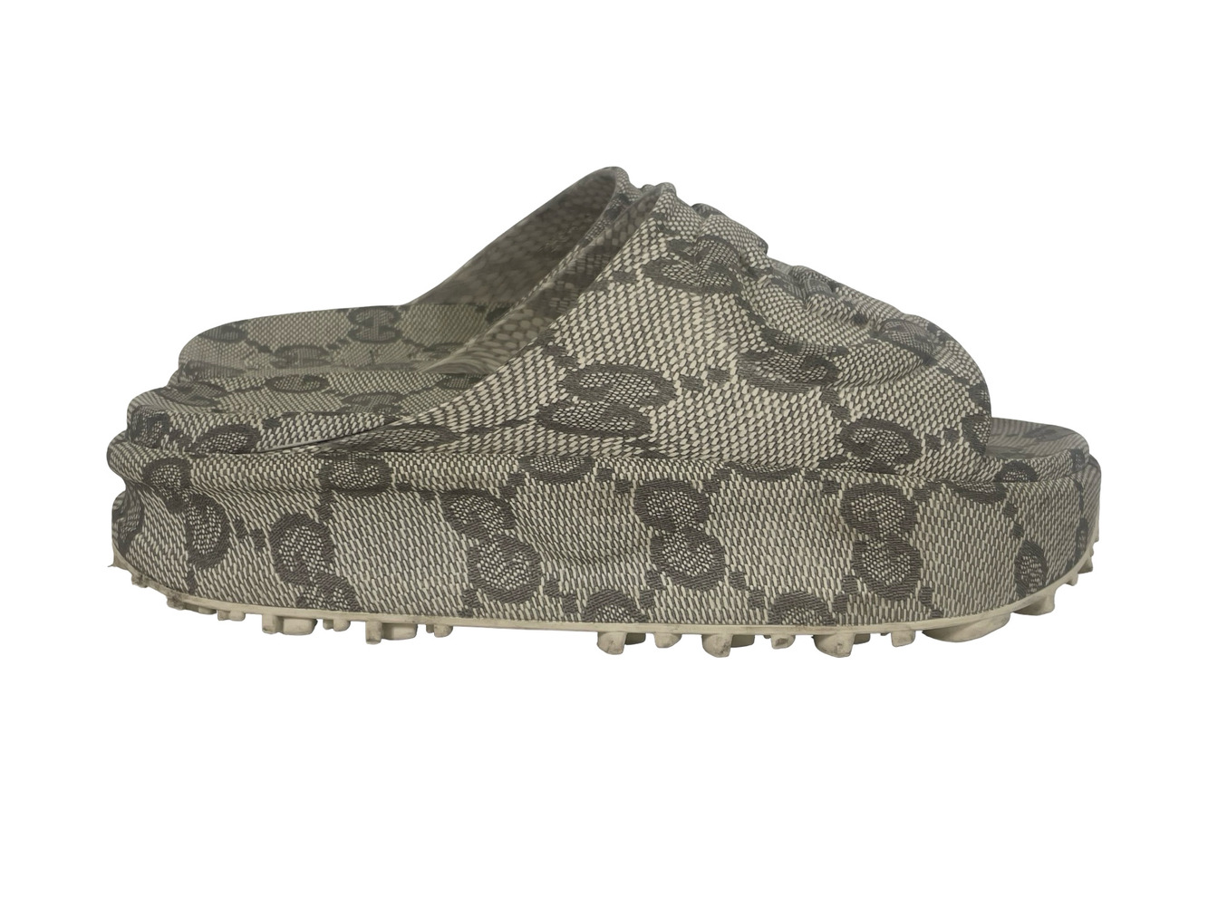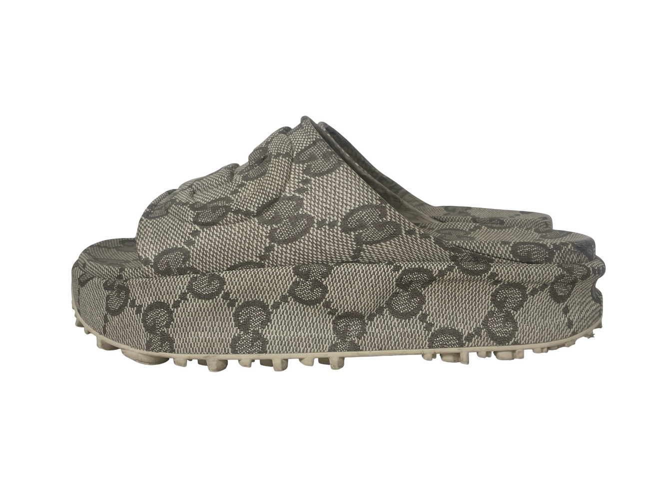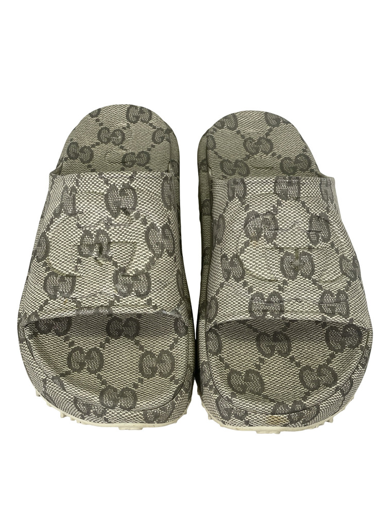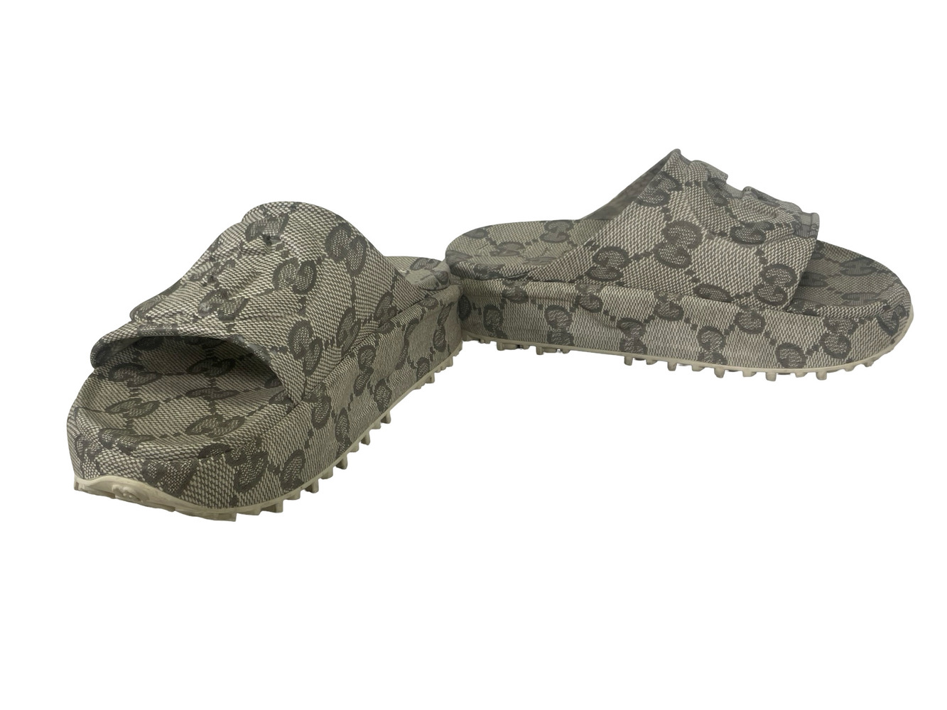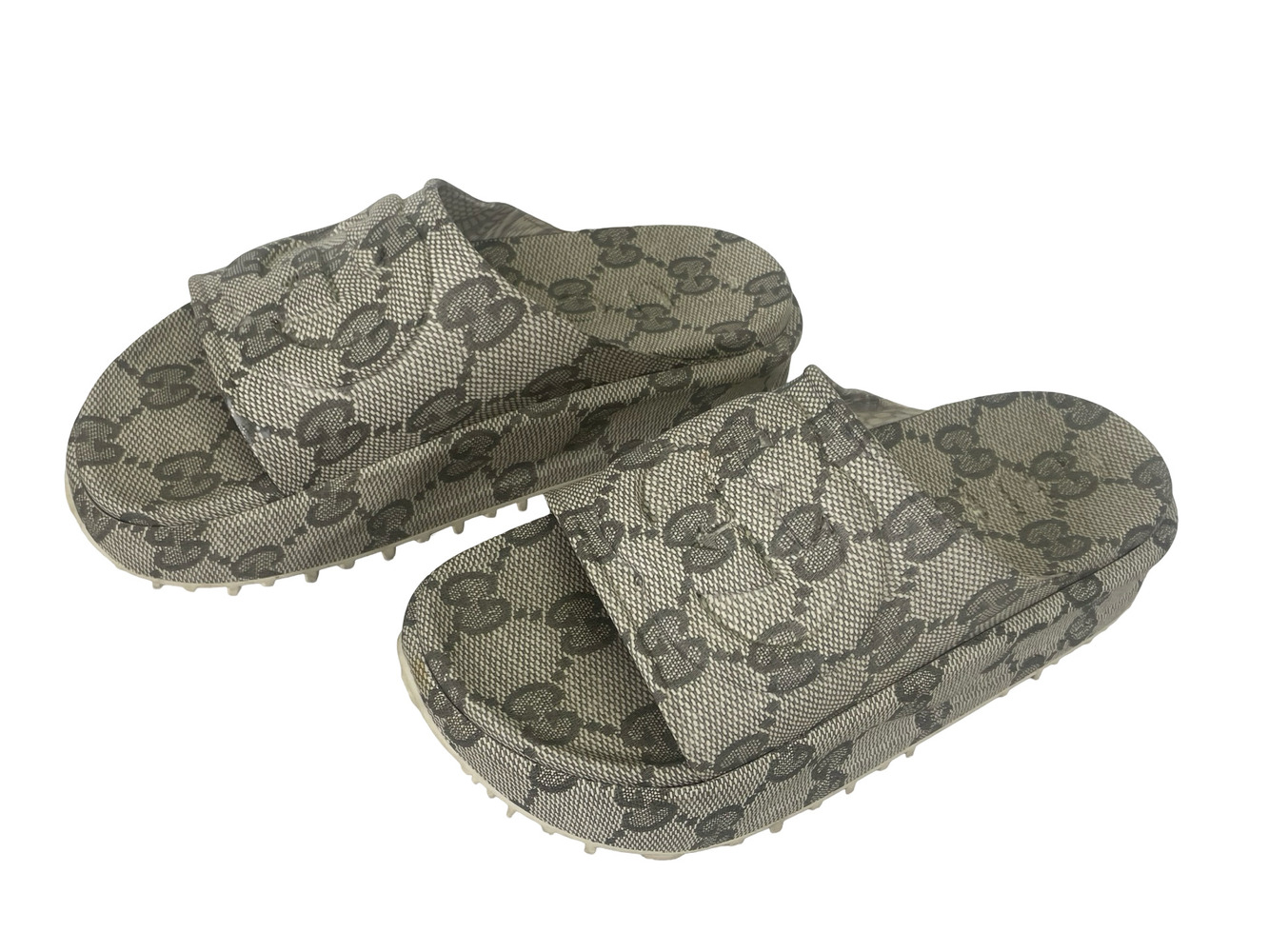 Gucci GG Slide Sandal Interlocking Beige Ebony Sz:6