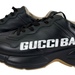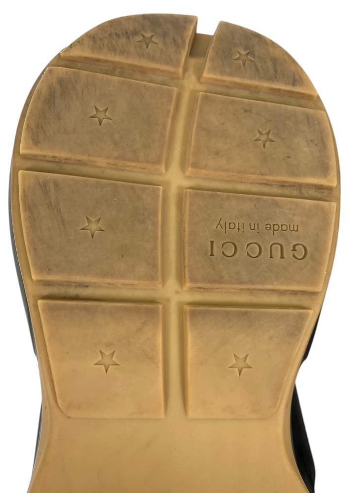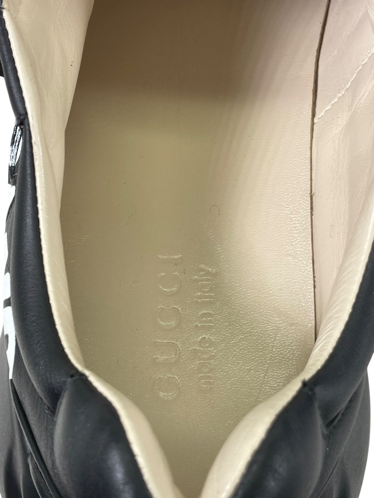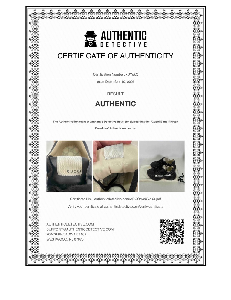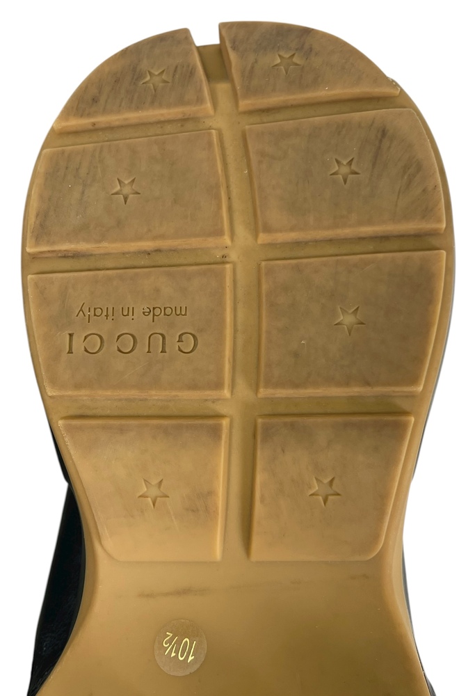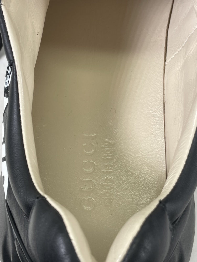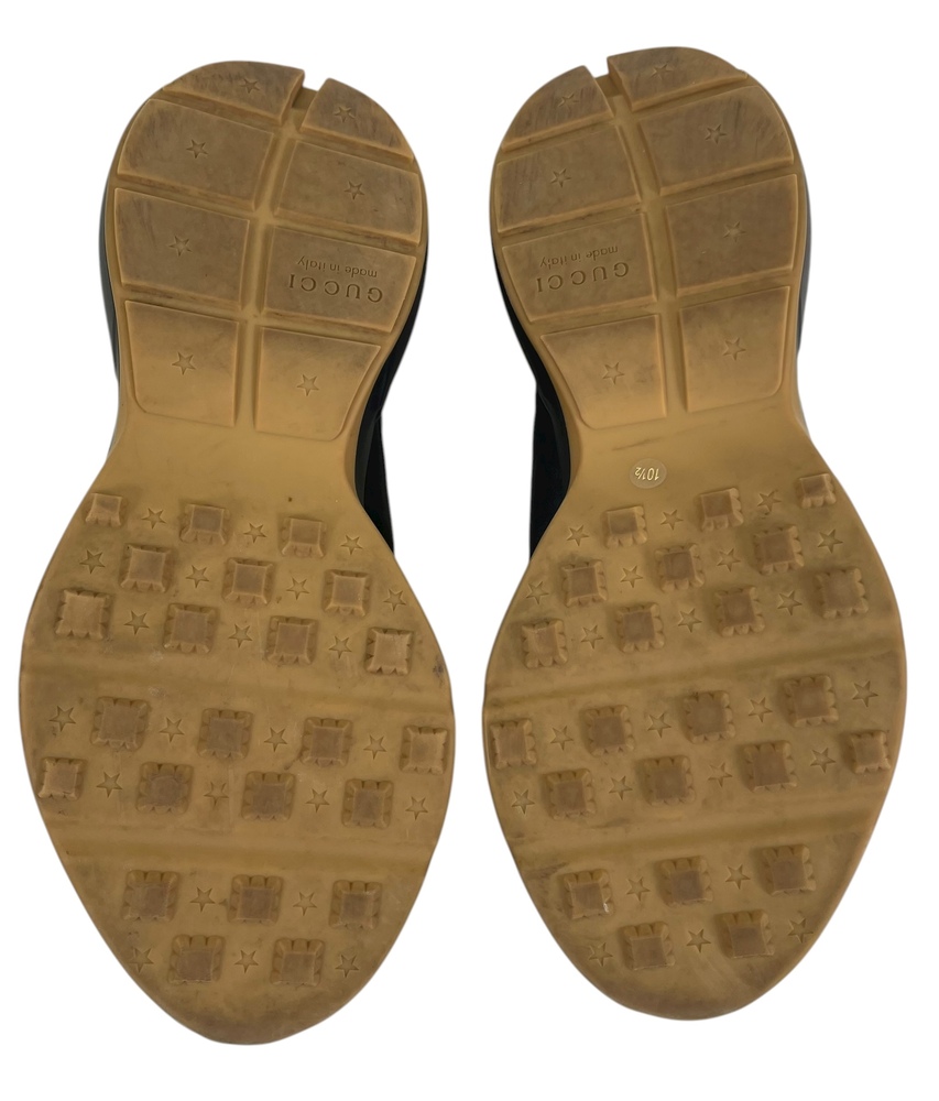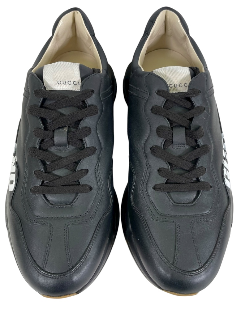 -This Gucci Rhython sneaker in men's US size 10.5 features a bold Gucci Band print, adding a modern twist to your classic sneaker. Designed in Italy, it provides a vintage feel with chunky rubber sole. Limited edition.