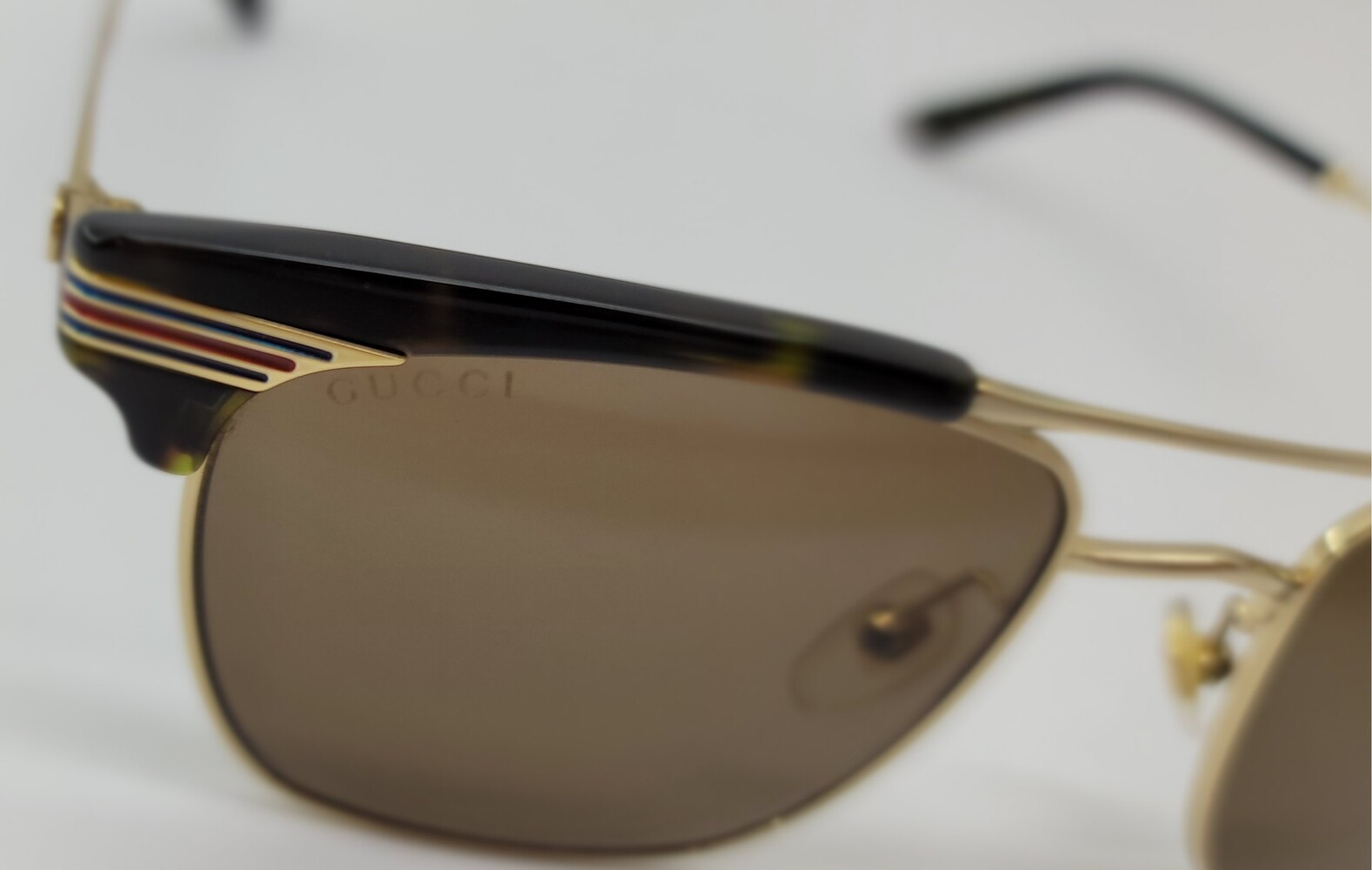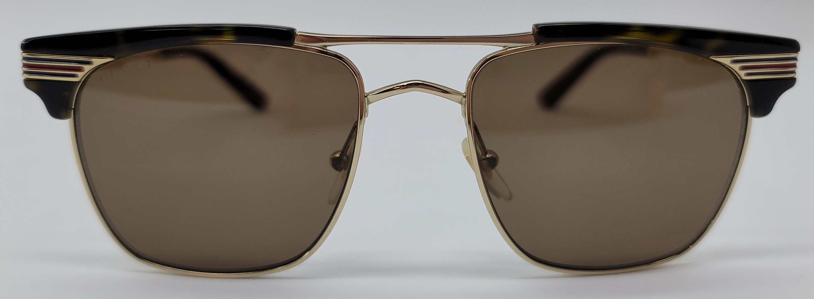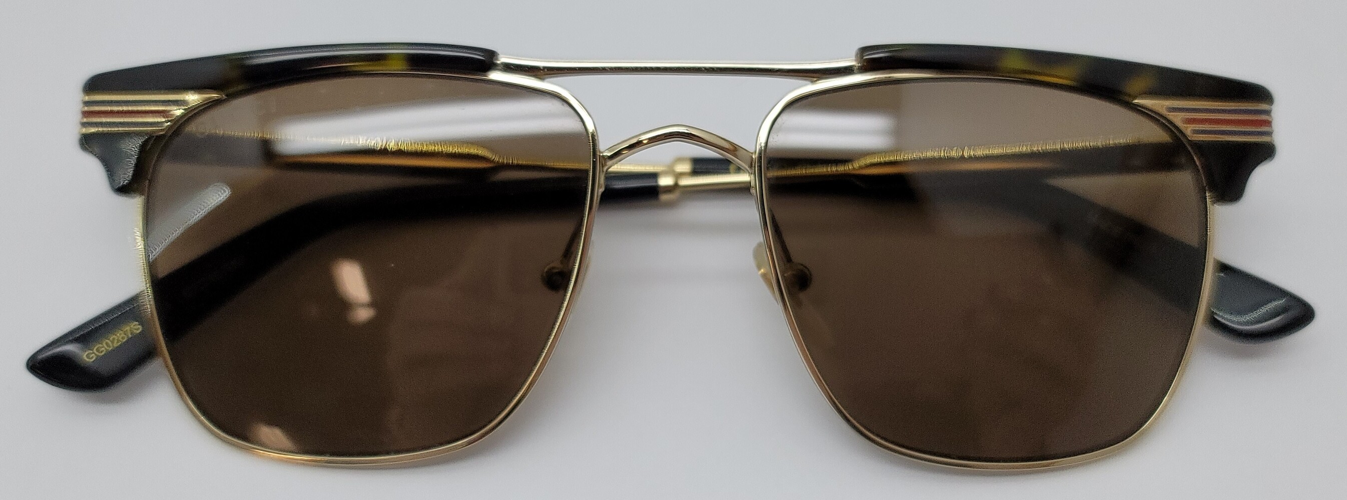 Gucci Sunglasses Men's Square Metal Frame Havana Gold Brown Lens GG0287S 003