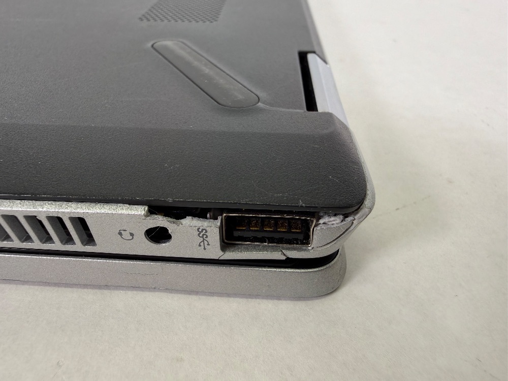 There is some damage on the laptop, on the left side by the usb port as seen in photos.