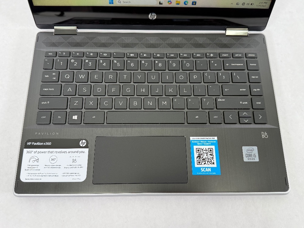 The Hewlett-Packard x360 Pavilion Convertible is a 14 touchscreen laptop, built around an Intel Core i5-1035G1 Processor clocking at 1.19GHz. It features 8GB RAM, providing powerful performance for multitasking, and a 256GB SSD for swift storage capabilities. As a convertible laptop, it offers versatile form factors. The system operates on the latest Windows 11 Home OS, offering user-friendly navigation and comprehensive security features.