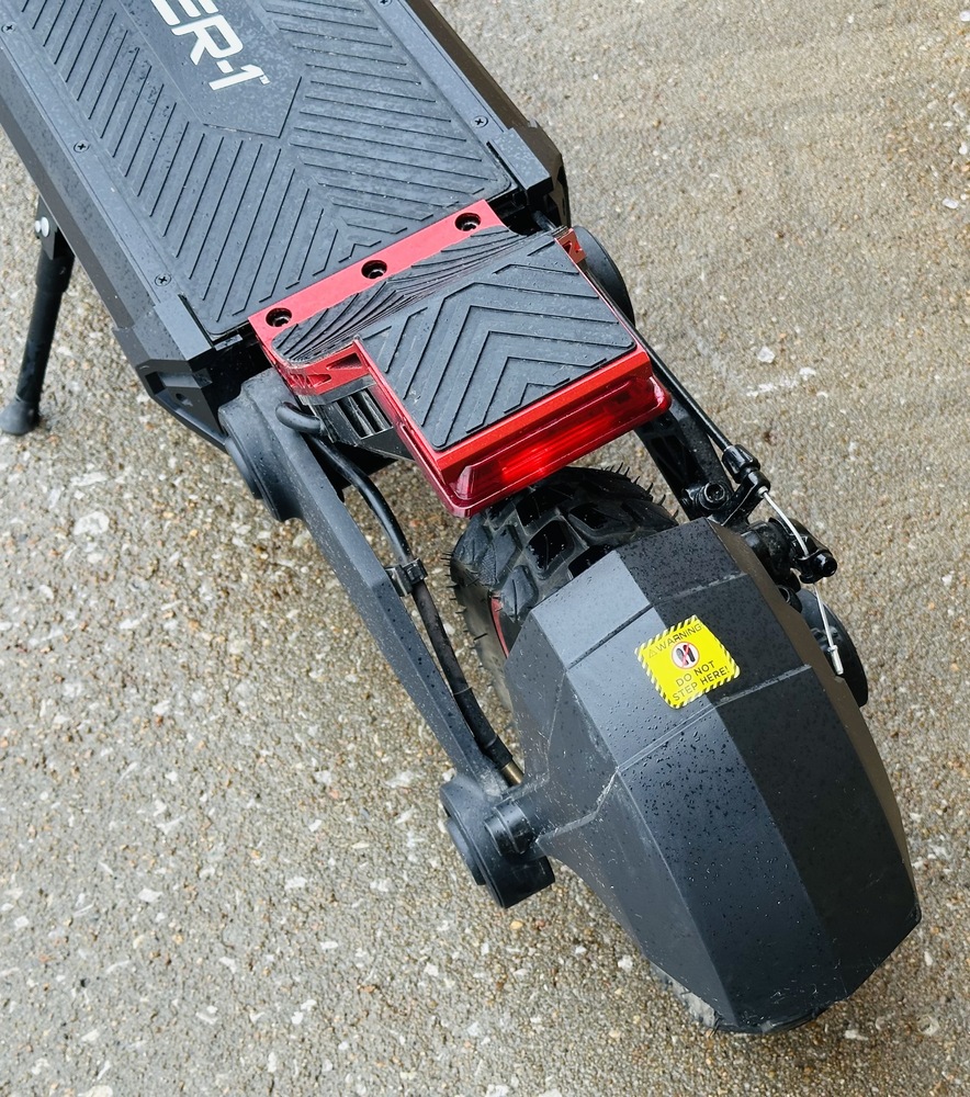 In good condition, shows some scuffs and scratches from regular use. Replacement charger included. Brake lights and Front Lights work as intended. See all pictures for exact details.