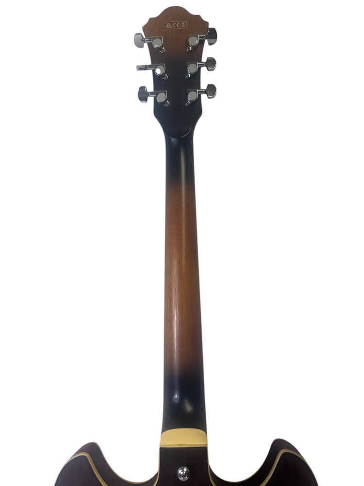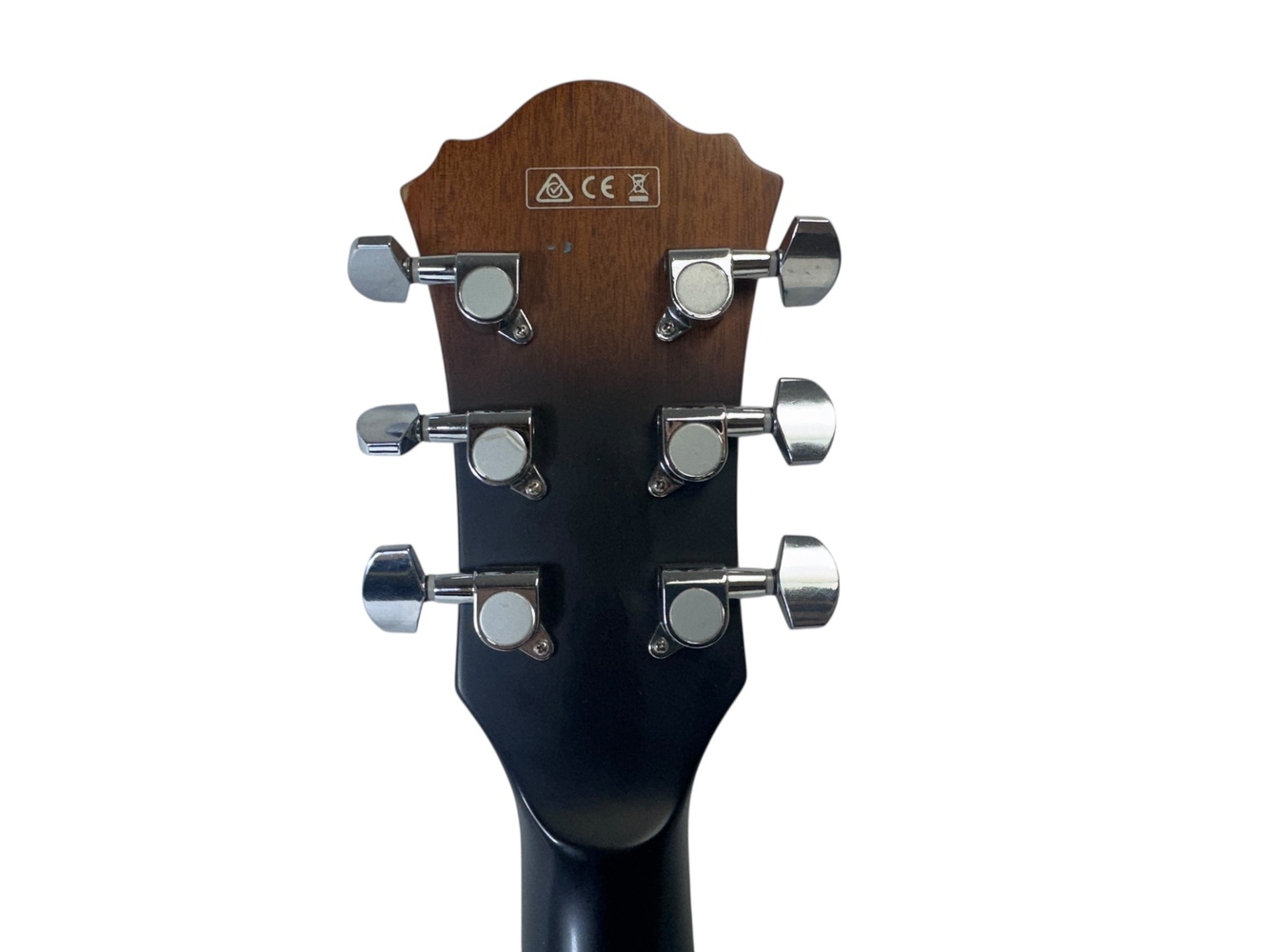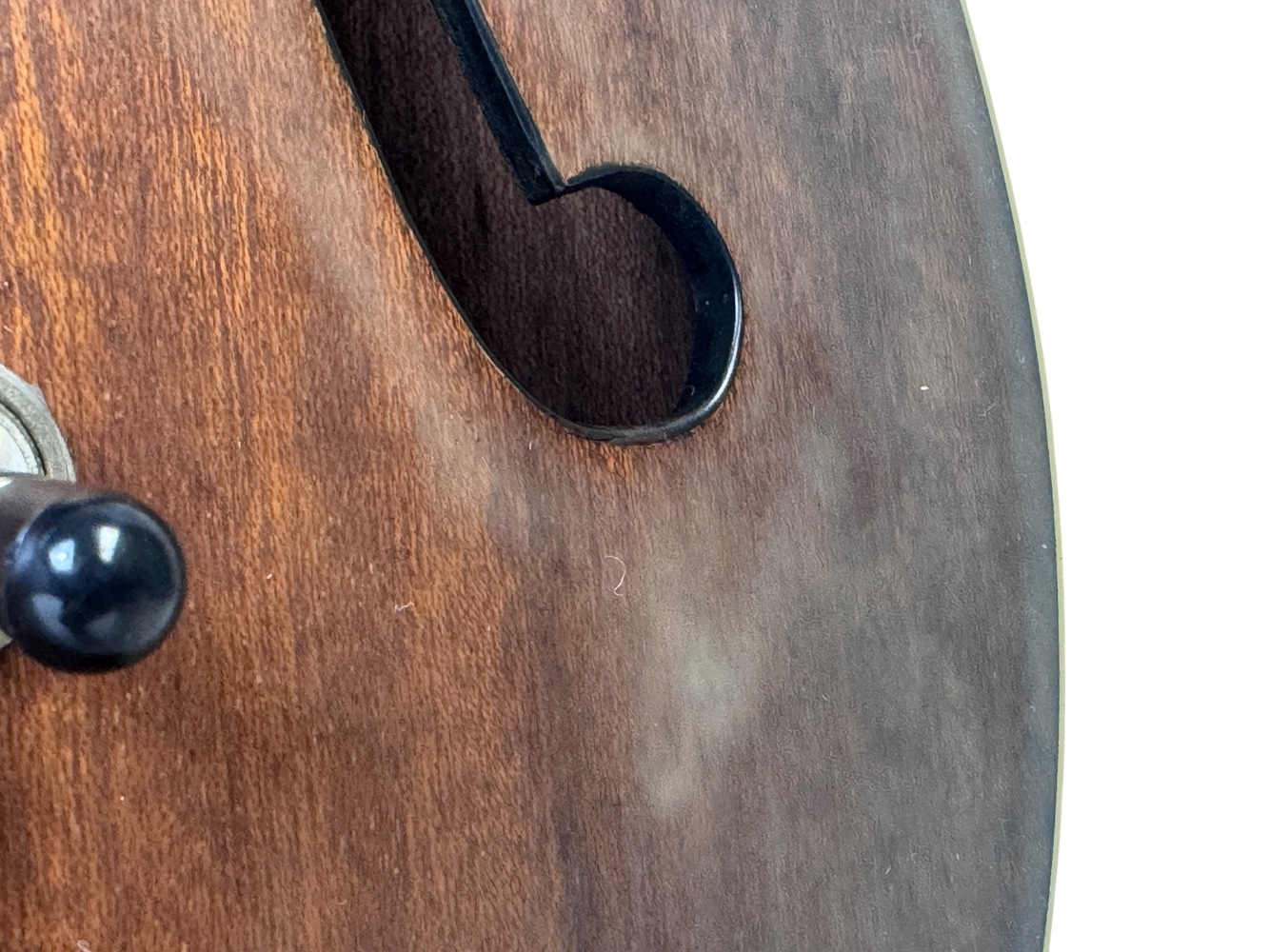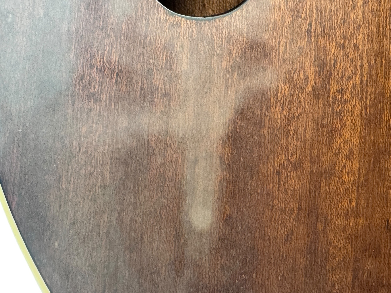 - Body has finish wear/damage (see photos, white film on guitar even after polishing)
