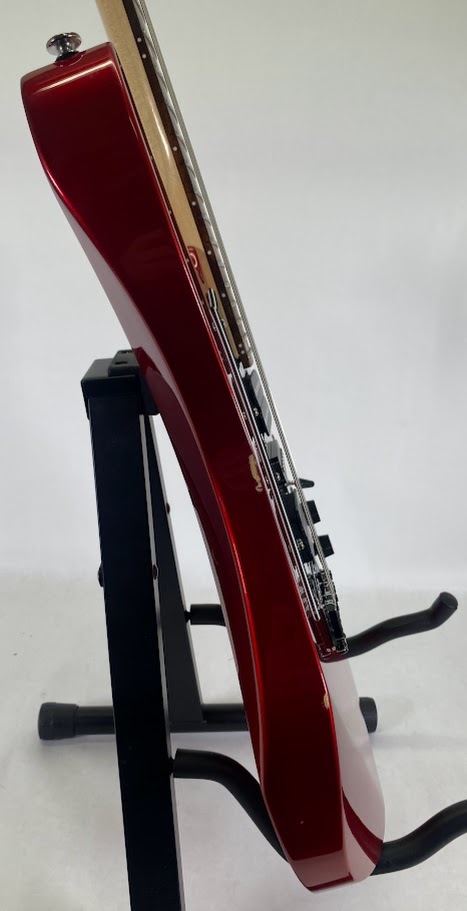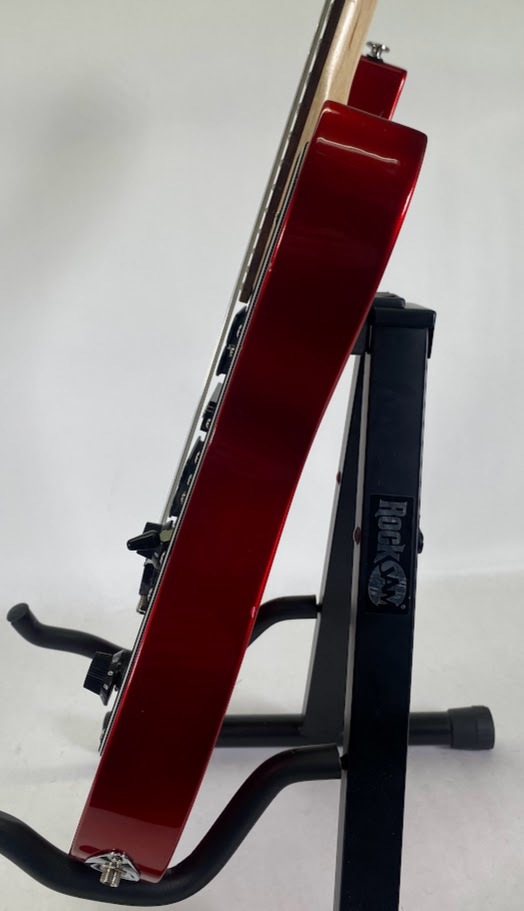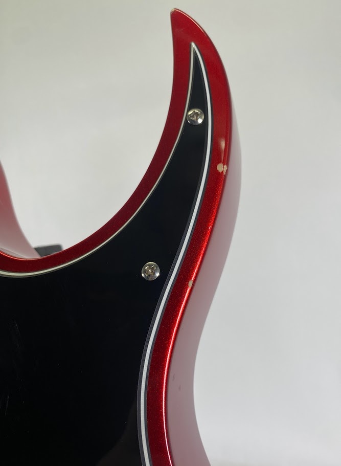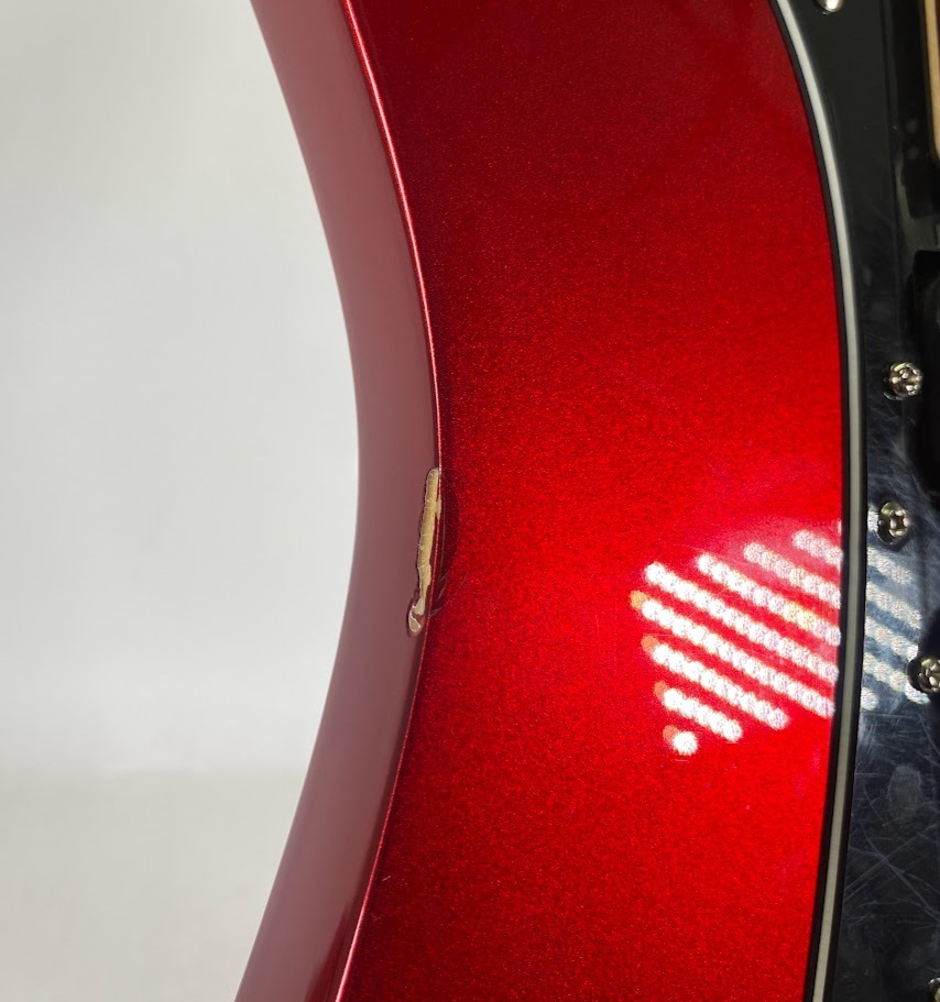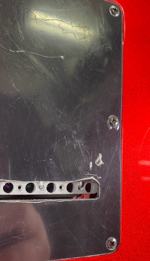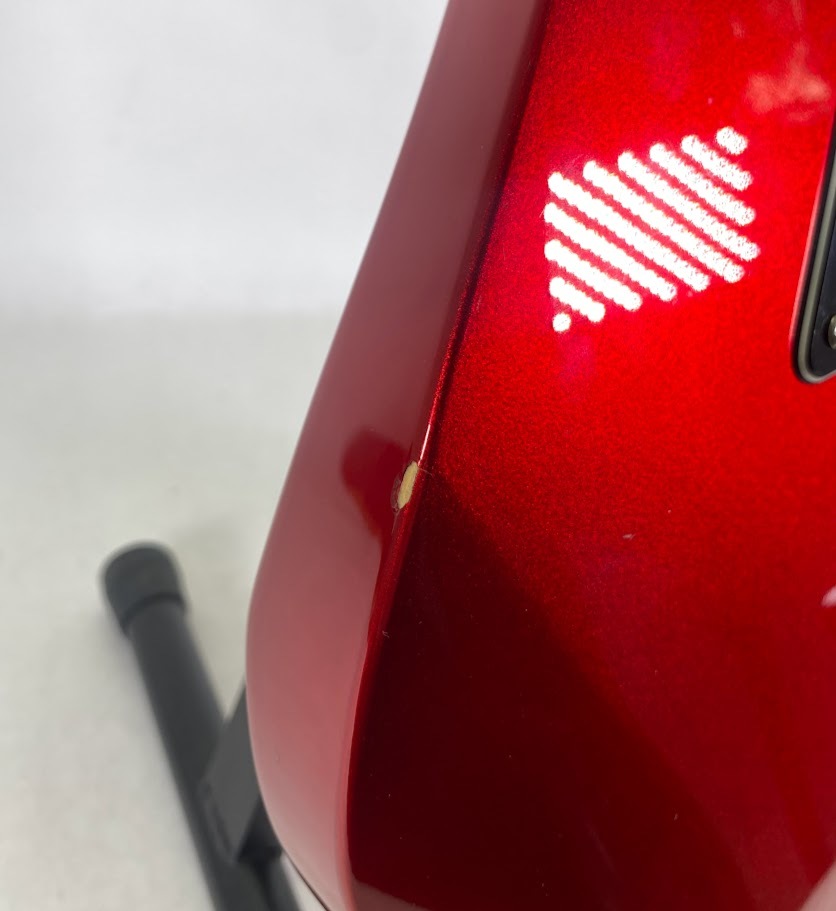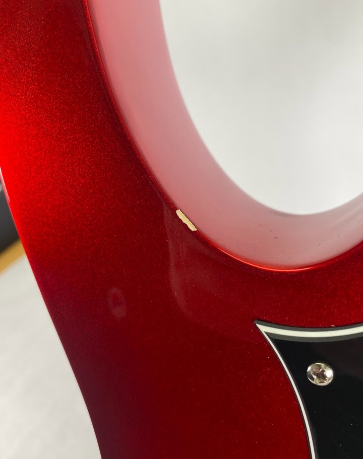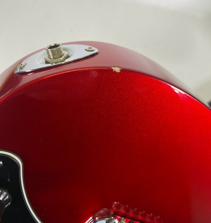 This guitar has been fully cleaned, tested, restrung, and plays great. There are some chips, scratches, and cosmetic imperfections to the finish (all pictured), but otherwise in great shape. One of the bridge saddles has been replaced. No case or gig bag included with purchase. Please see all photos for exact physical condition.