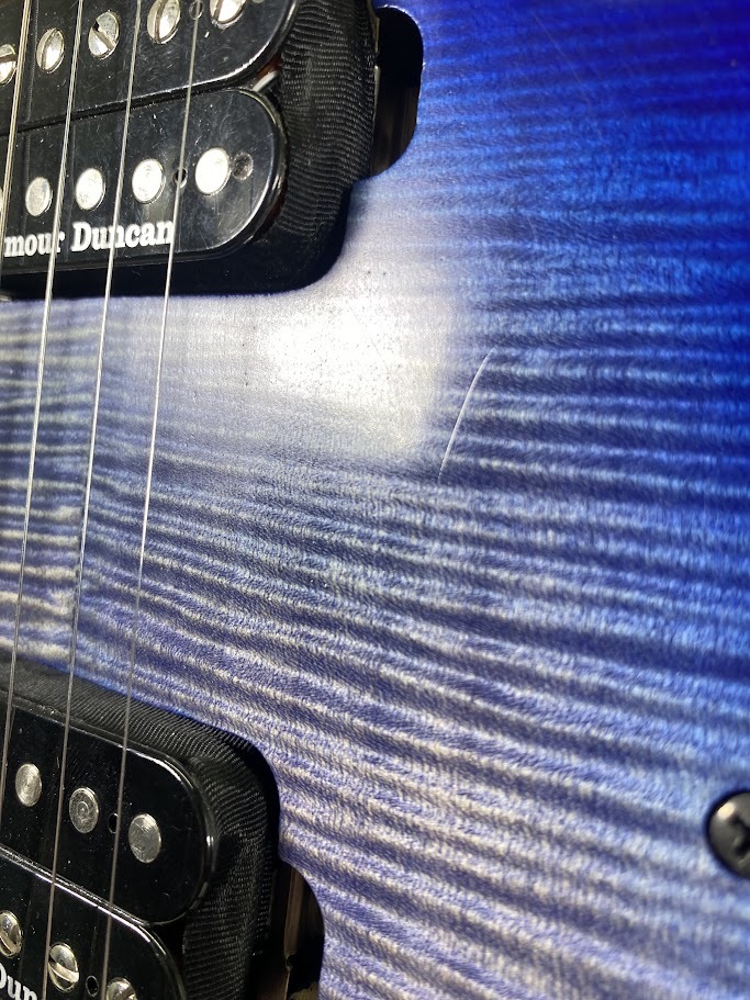 This guitar has been fully cleaned, restrung, tested, and works perfectly. Floyd Rose has been setup to the best of our abilities, but could use some attention. Guitar is in excellent shape, however does have some very minor scratches/blemishes around the body, all of which are pictured in the listing. Includes whammy bar and all pieces of the FR system, but no case or gig bag. Please see all photos for exact condition.