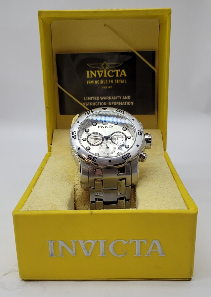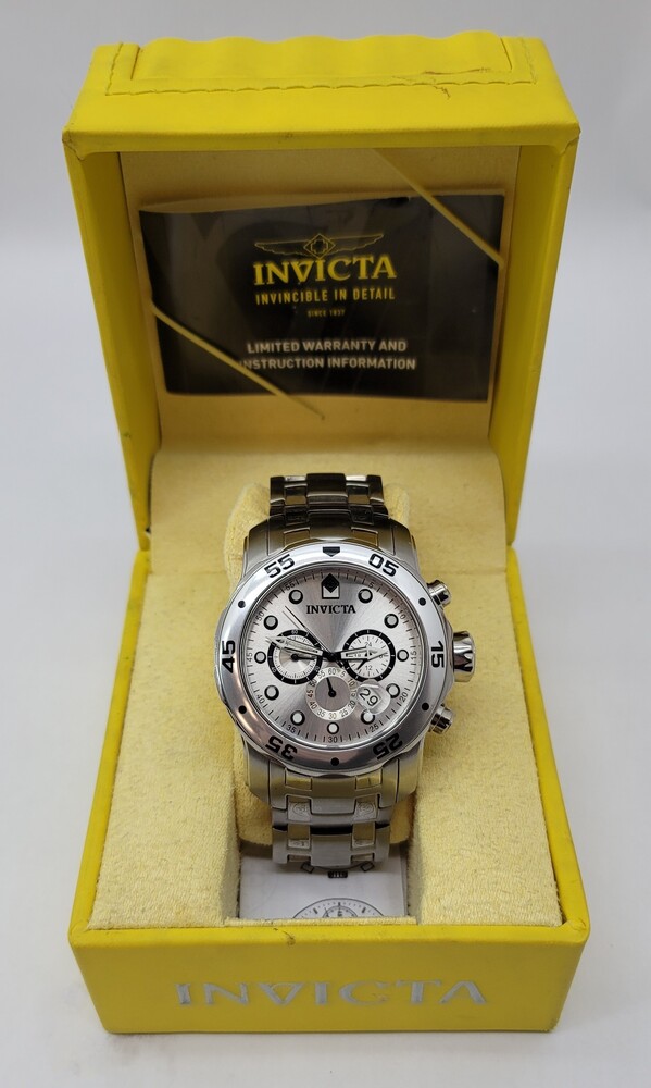Invicta Men's Silver Chronograph Wristwatch Stainless Steel Analog - With Box