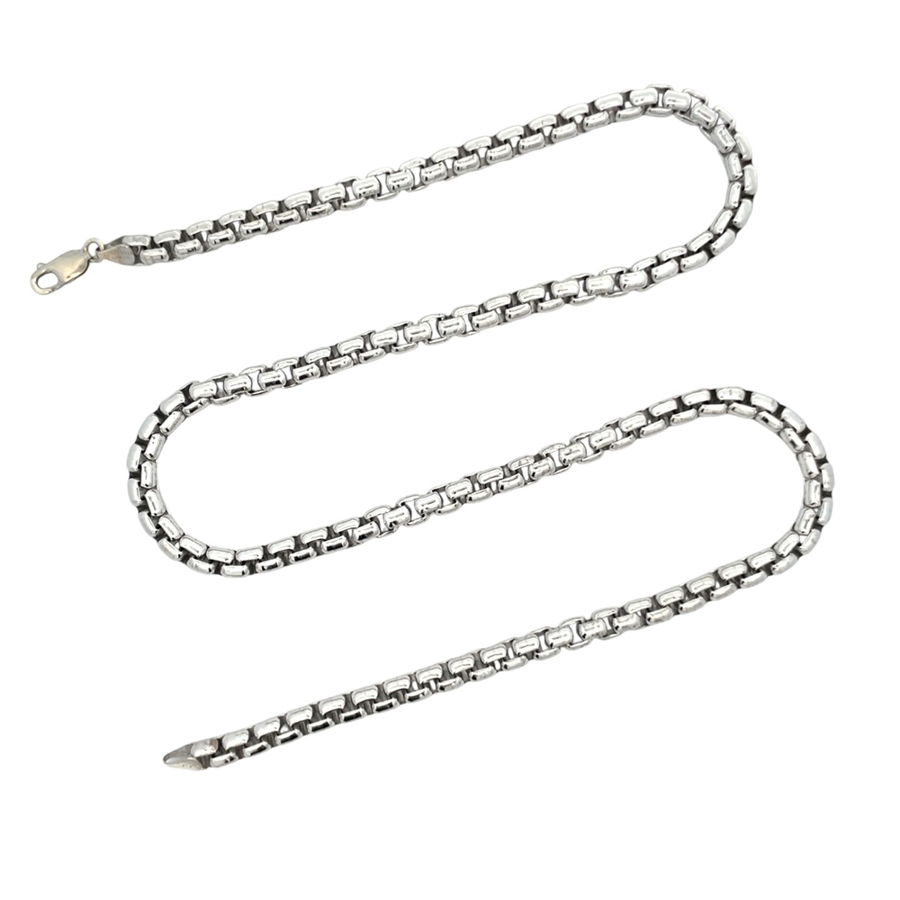 Italian 925 Sterling Silver 24 in. Rounded Box Link Chain 106.2g