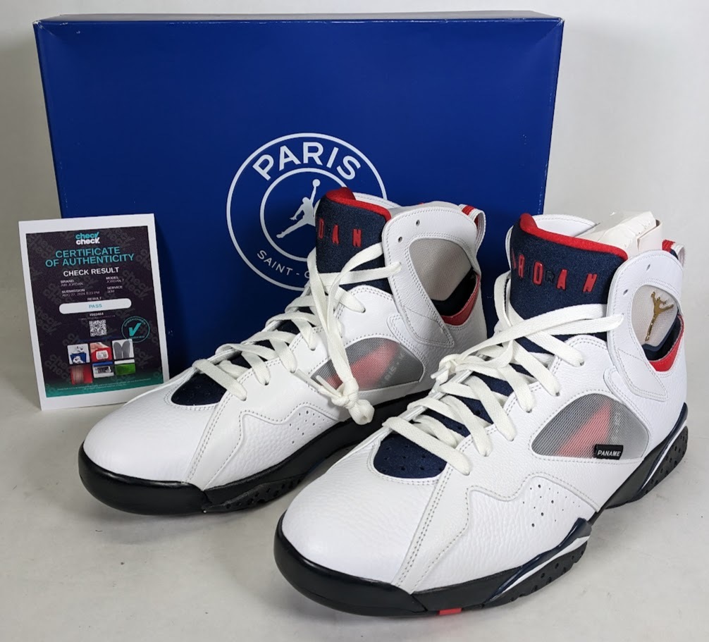 The Retro 7 PSGs for sale are preowned but in like new condition. There are no visible signs of wear to note. Included is the original box and COA from Check Check.