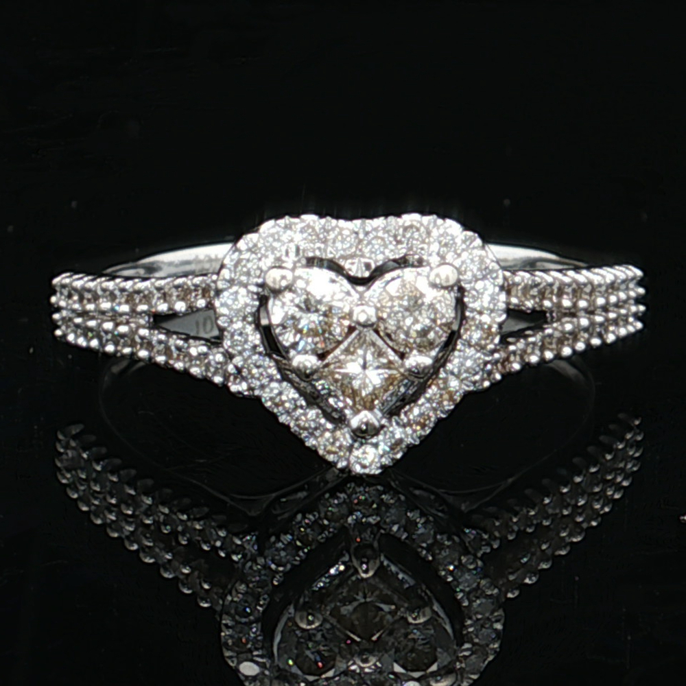 Ladies 10K White Gold 1/2CTW Diamond Heart Design Fashion Ring SZ:7