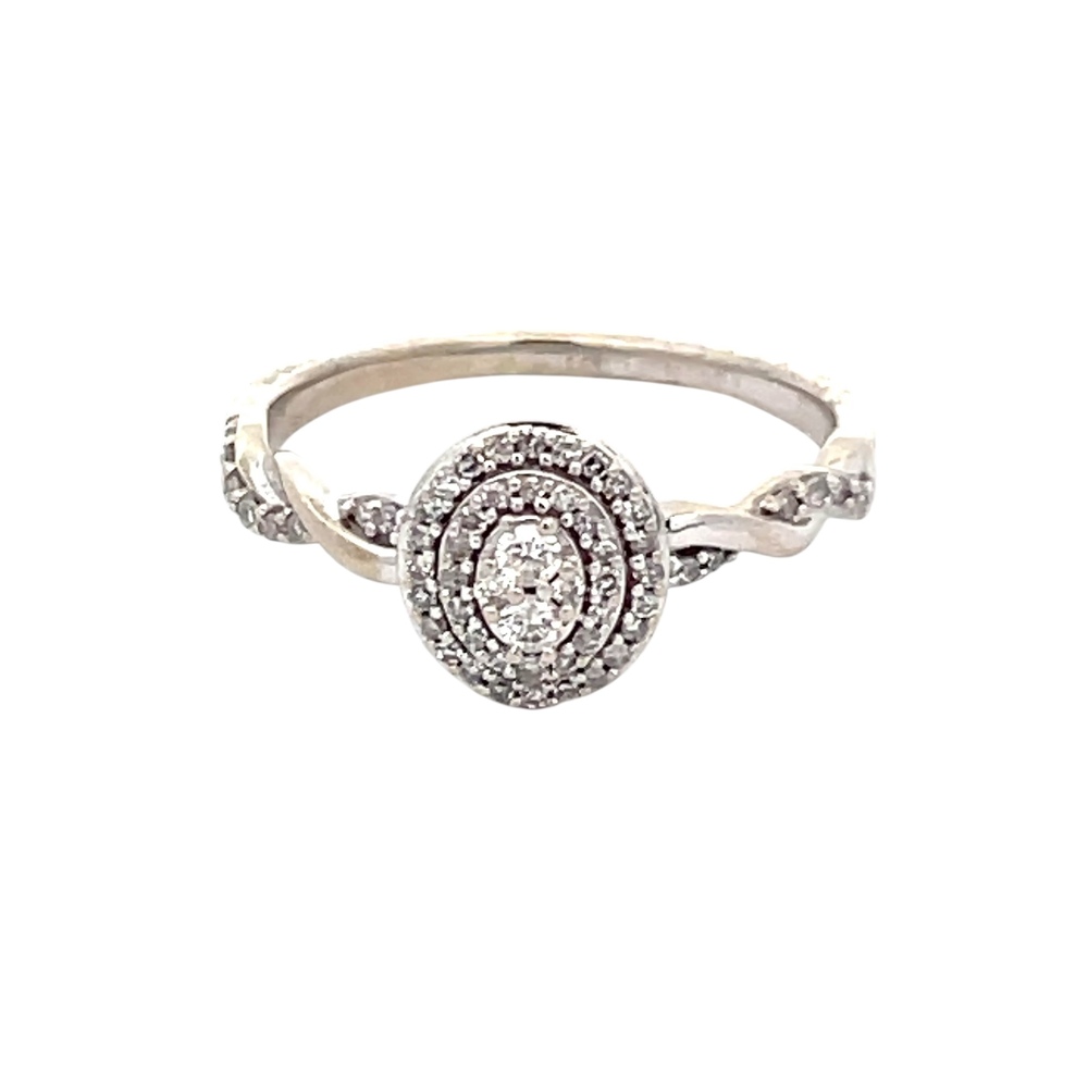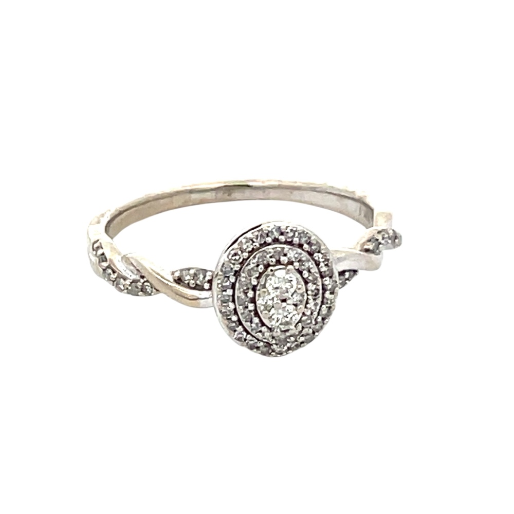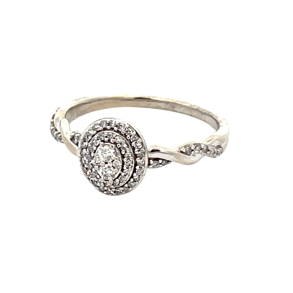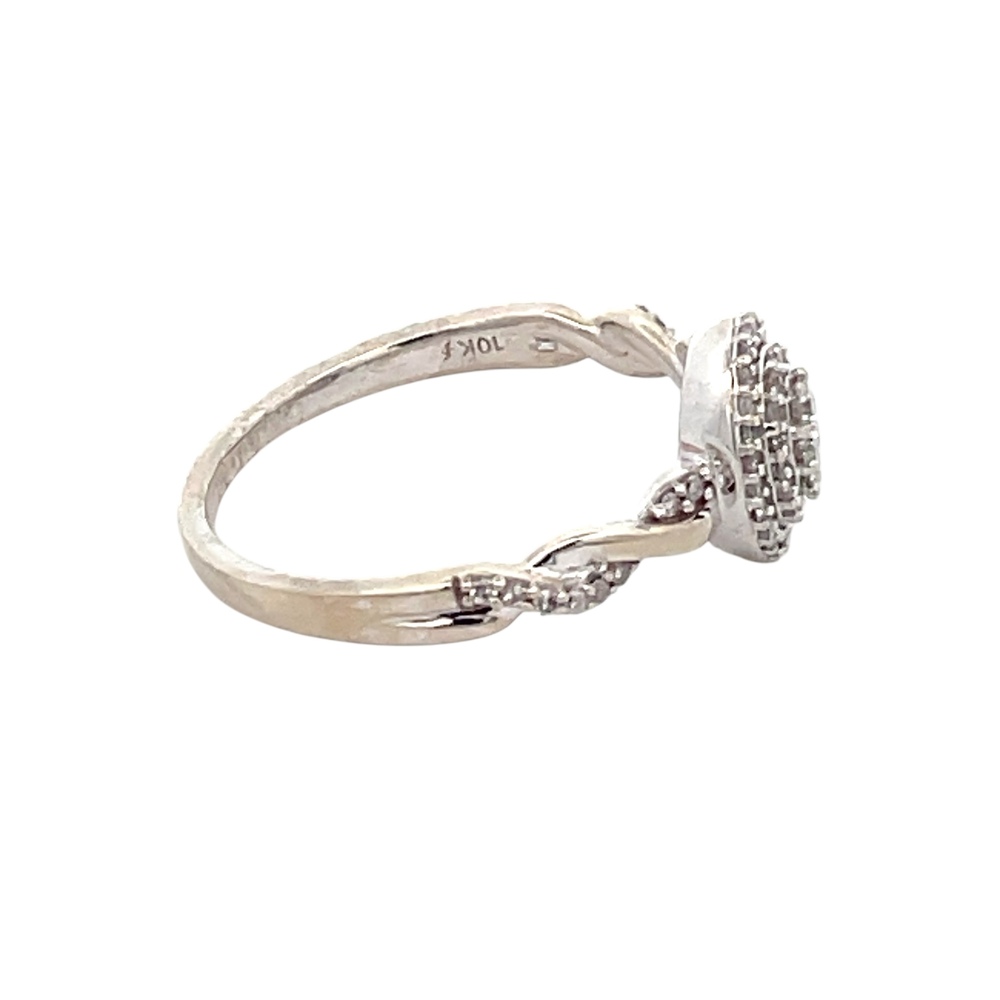 Ladies 10K White Gold 1/4CTW Diamond Oval Cluster Ring SZ:6.5