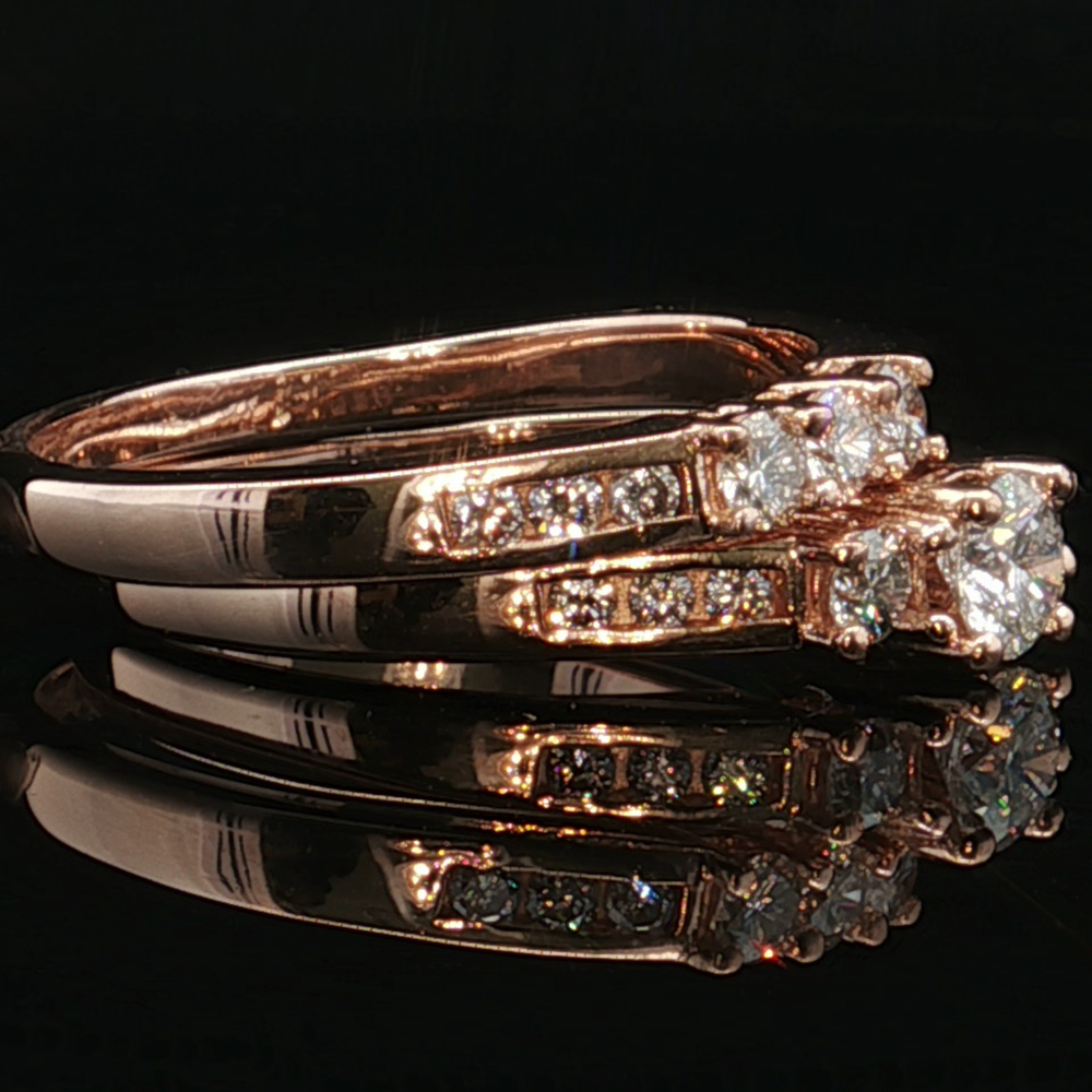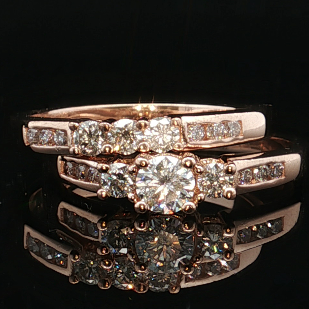 Ladies 14K Rose Gold 1.0CTW Diamond Two-Piece Bridal Set SZ:9