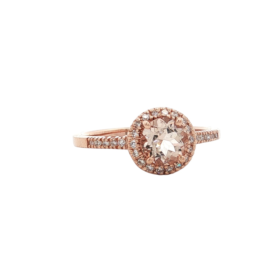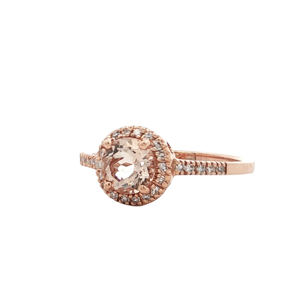 Ladies 14K Rose Gold Diamond Halo & Morganite Gemstone Ring SZ:7