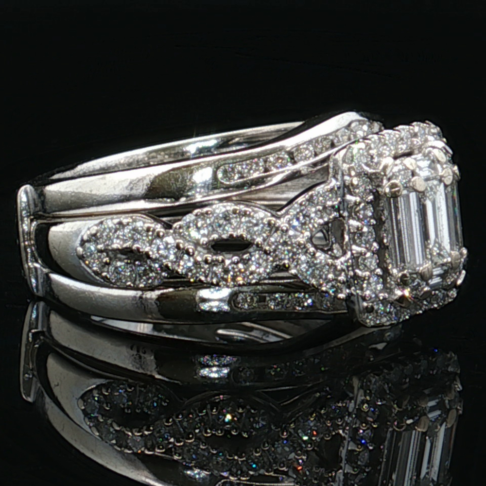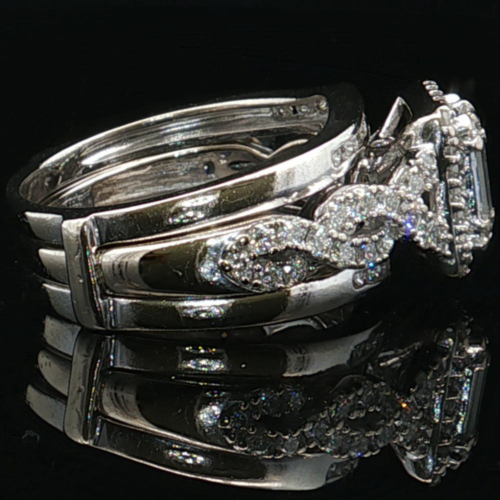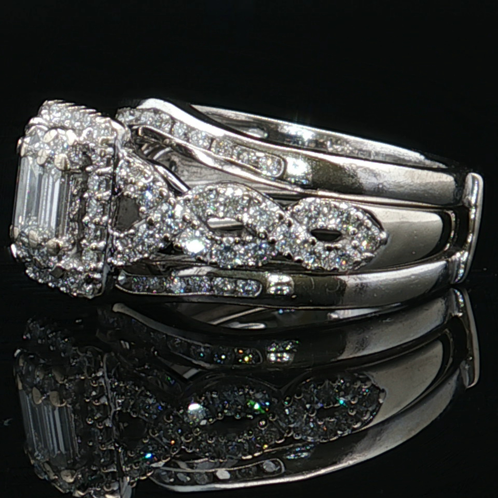 Ladies 14K White Gold 1-1/4CTW Diamond Halo Bridal Wrap Set SZ:7