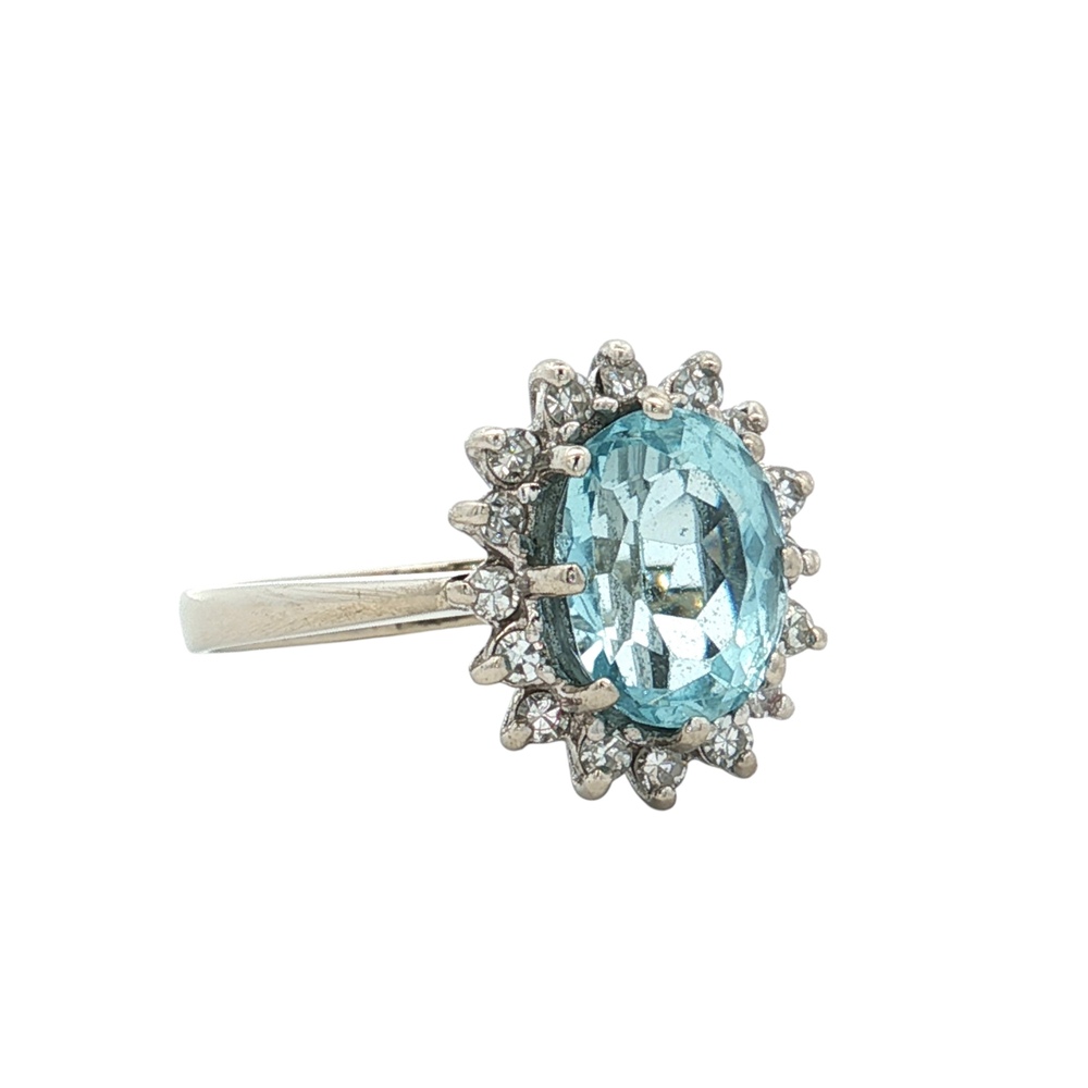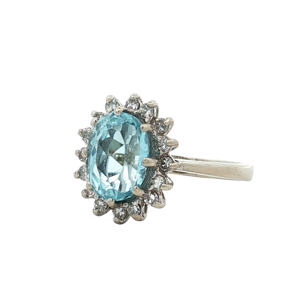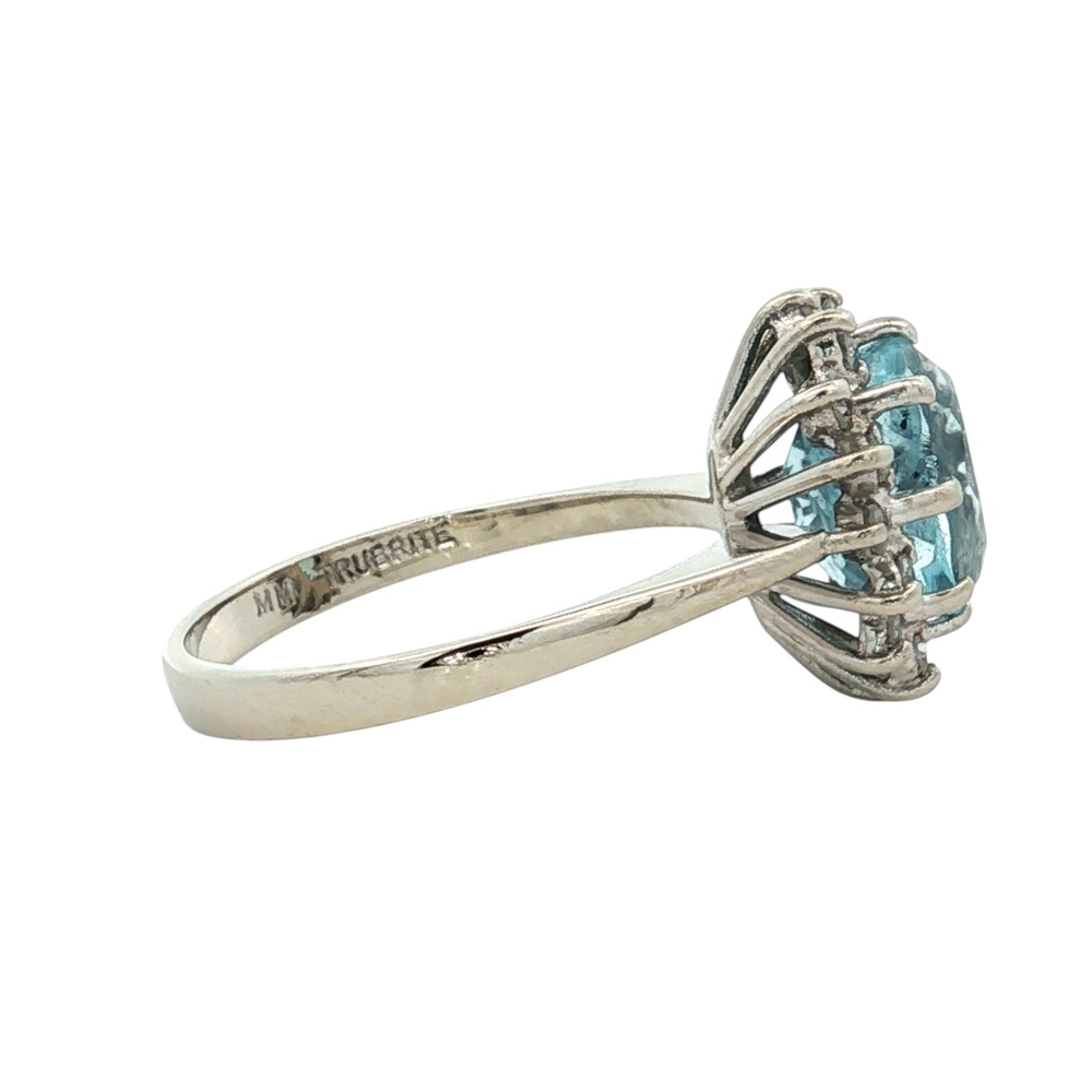 Ladies 14k White gold 1/5CTW Diamond & Aquamarine Gemstone Ring SZ:7.5
