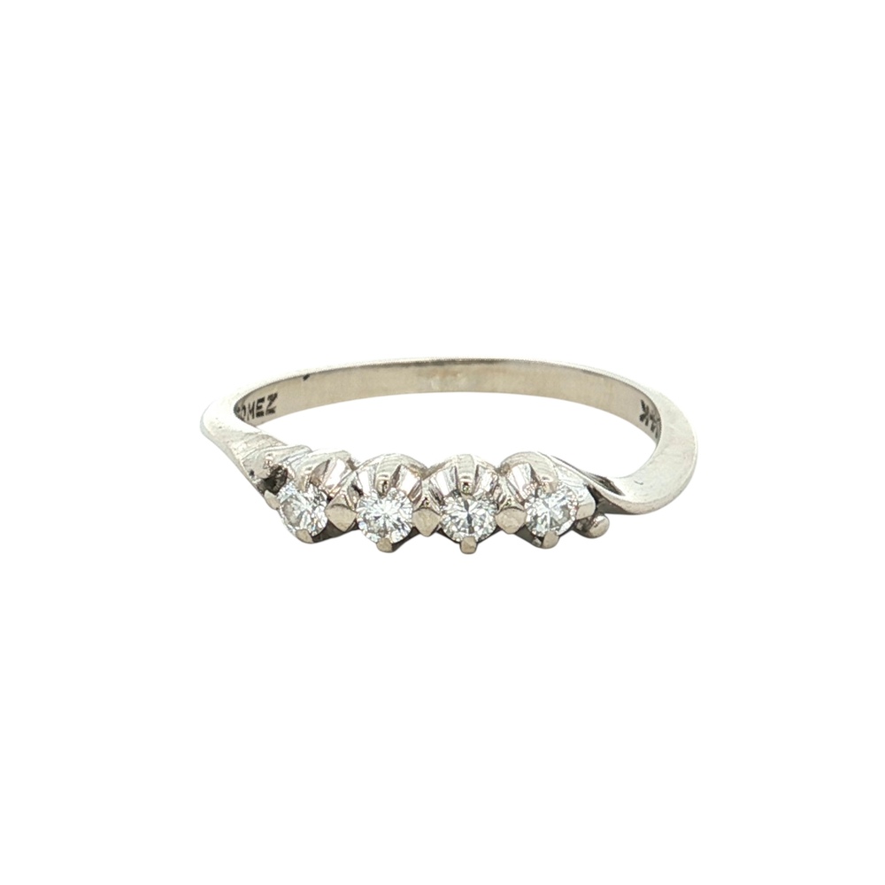 Ladies 14K White Gold 4-Diamond 1/5CTW Accent Band SZ:6.5