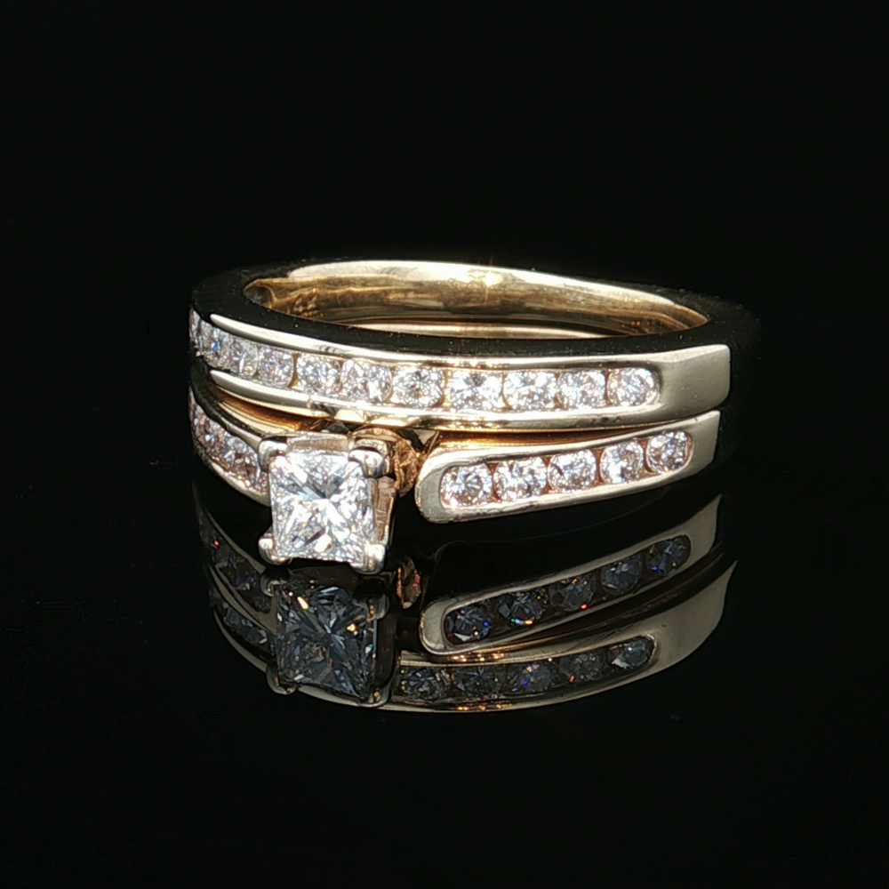 Ladies 14K Yellow Gold 1.0CTW Diamond 2-Piece Bridal Set SZ:7, 7.0g