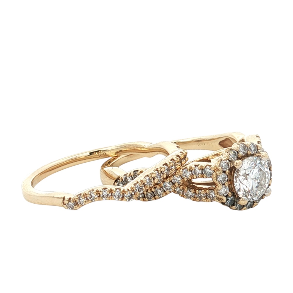 Ladies 14K Yellow Gold 1-1/2CTW Lab-Diamond Two-Piece Bridal Set SZ:9, 6.7g