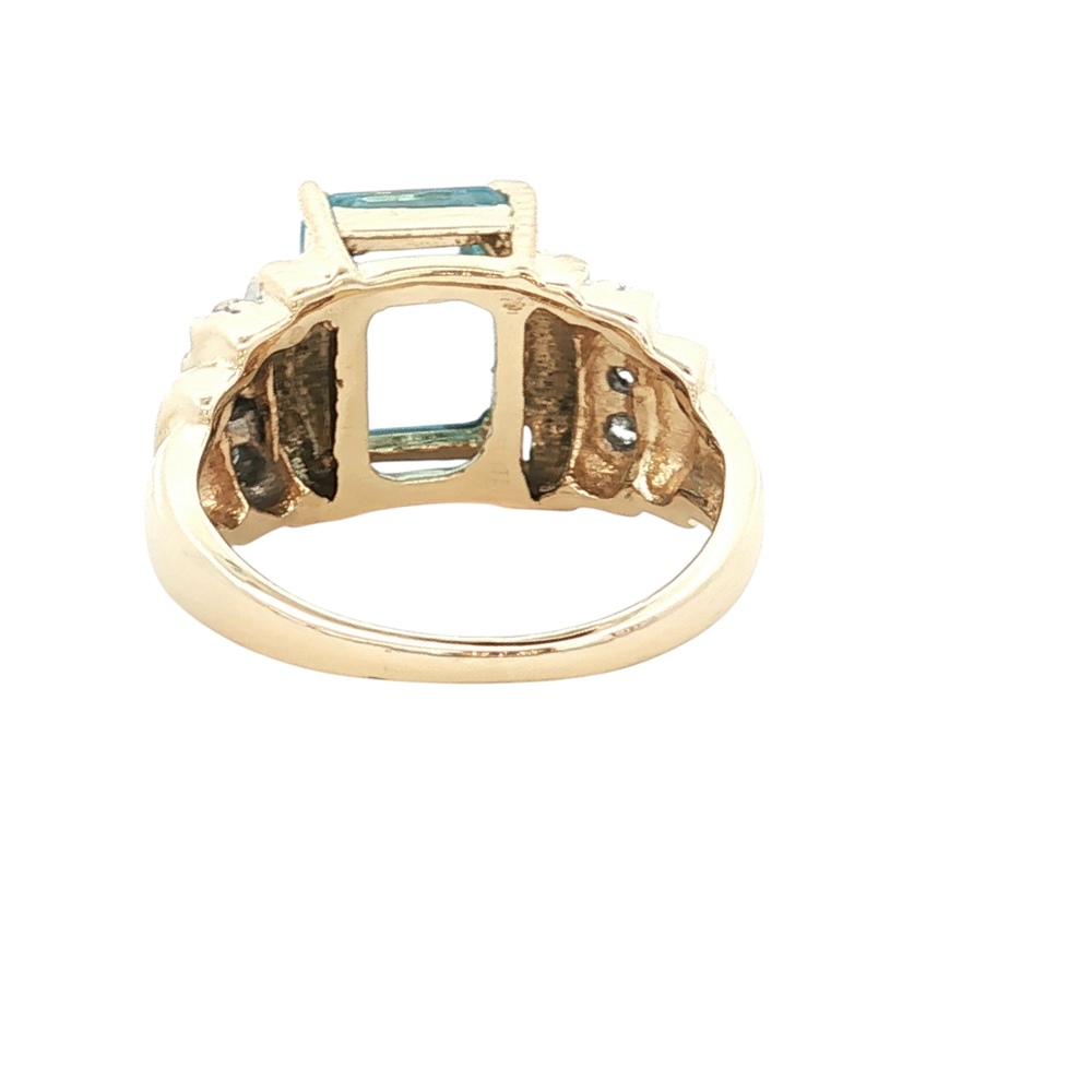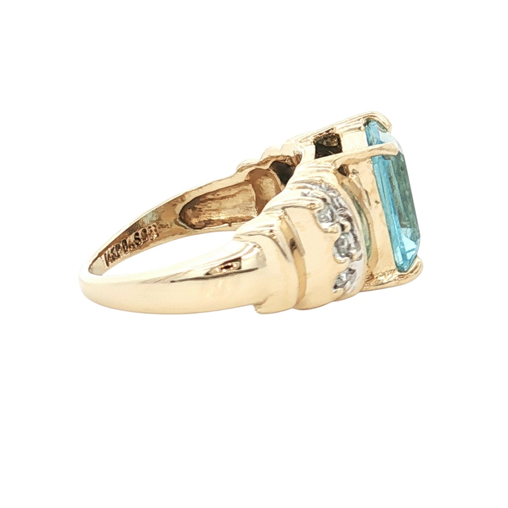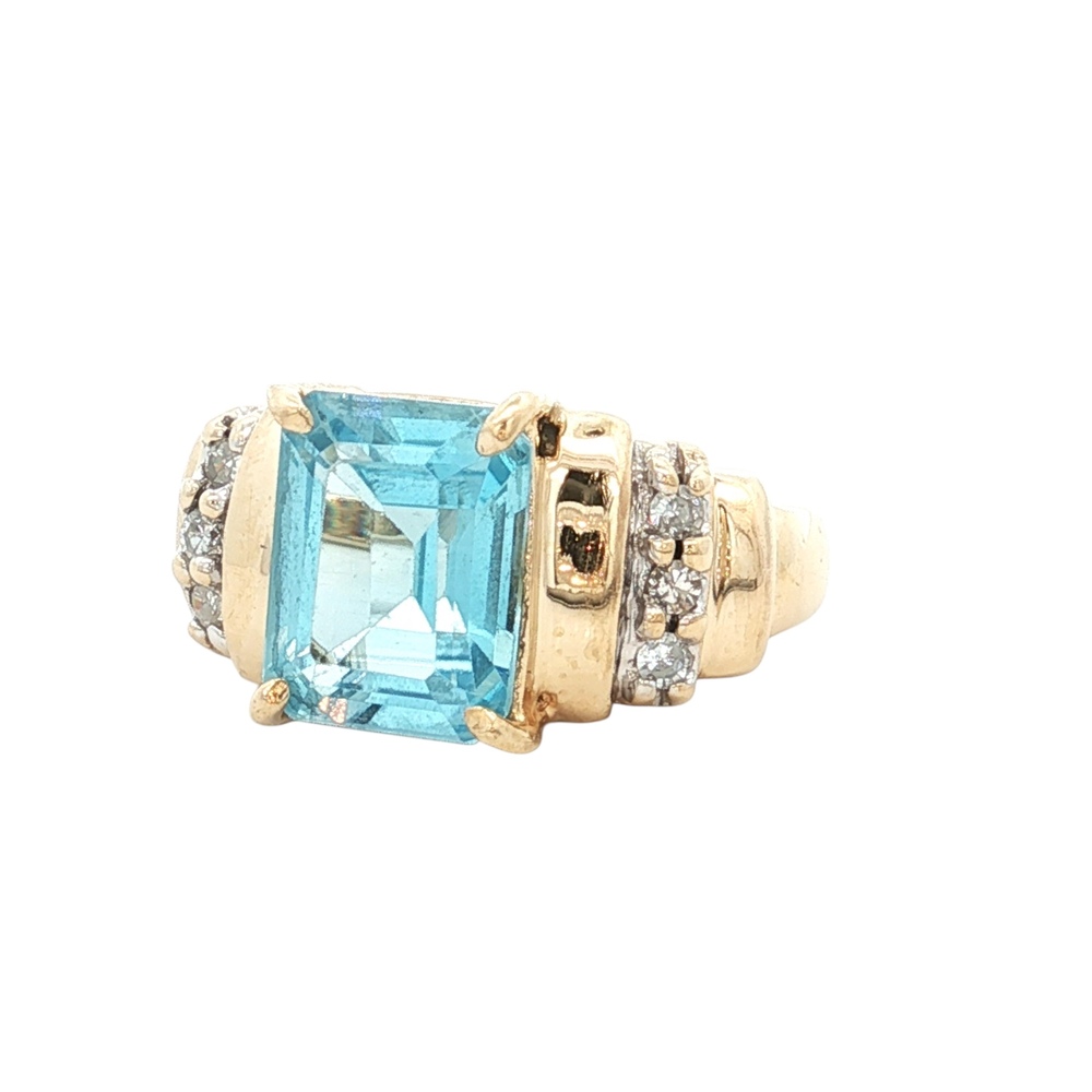 Ladies 14K Yellow Gold Diamond & Blue Topaz Gemstone Ring SZ:3.5