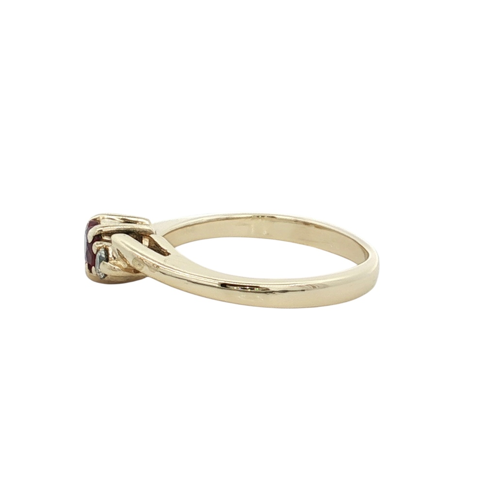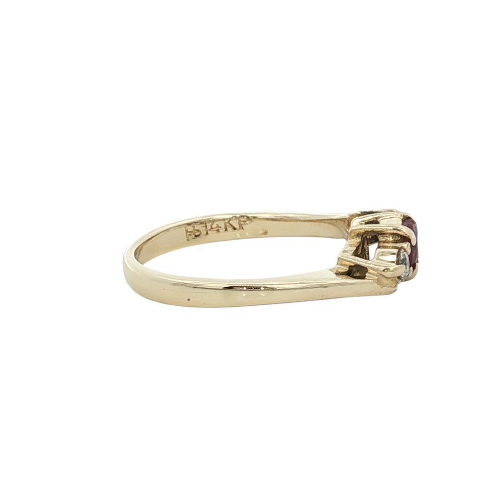 Ladies 14K Yellow Gold Diamond & Ruby Gemstone Ring SZ:5