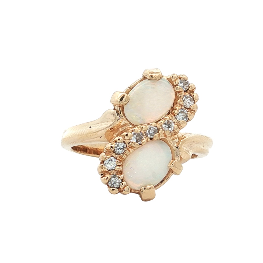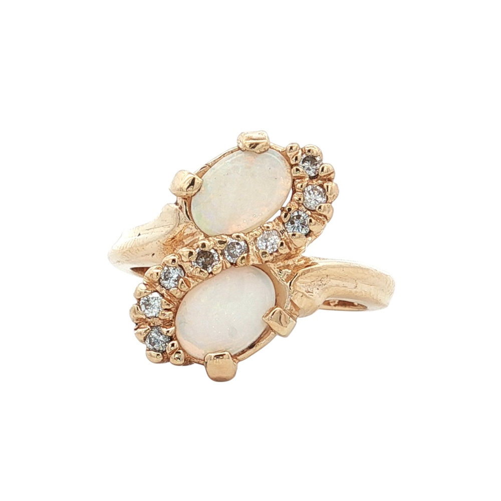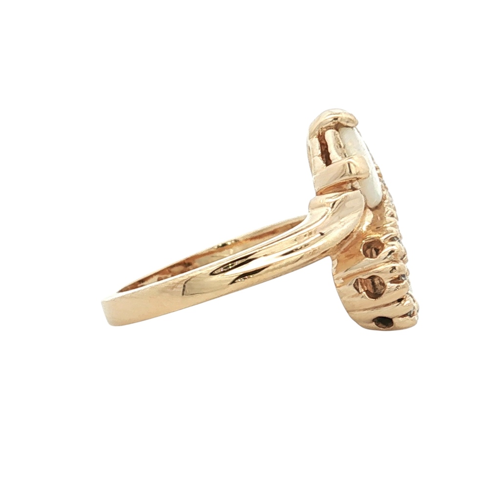 Ladies Vintage 14K Yellow Gold Diamond & Opal Gemstone Ring SZ:6