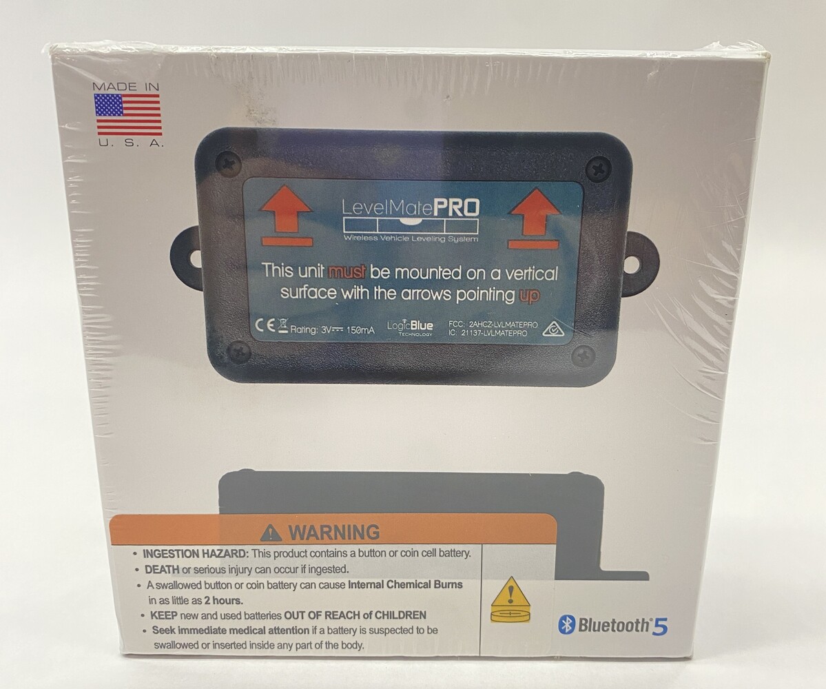LevelMatePRO Wireless Vehicle Leveling System. Factory sealed, new in box. LevelMatePRO works with RVs, trailers and 5th wheels using a high quality 3-axis digital accelerometer to accurately calculate angles and height requirements to reach level. Featuring dynamic site evaluation, hitch position drafting and multi-operating system compatibility. Check photos for full physical conditions of this product.