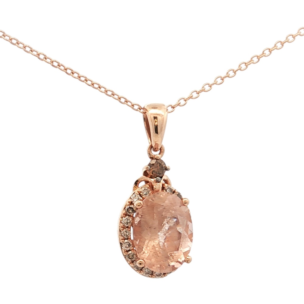 LeVian 14K Rose Gold Morganite & Chocolate Diamond Necklace 18 in.