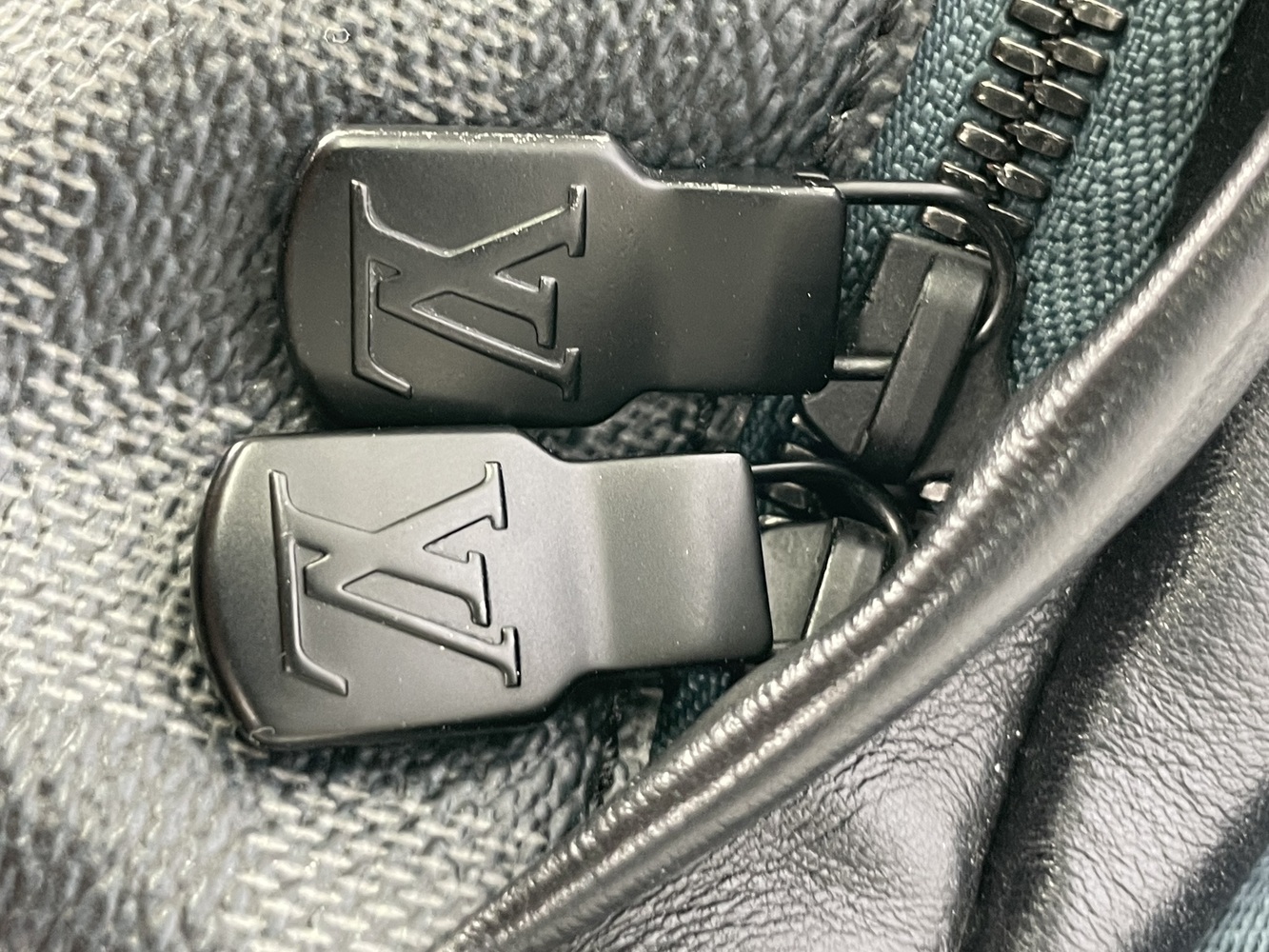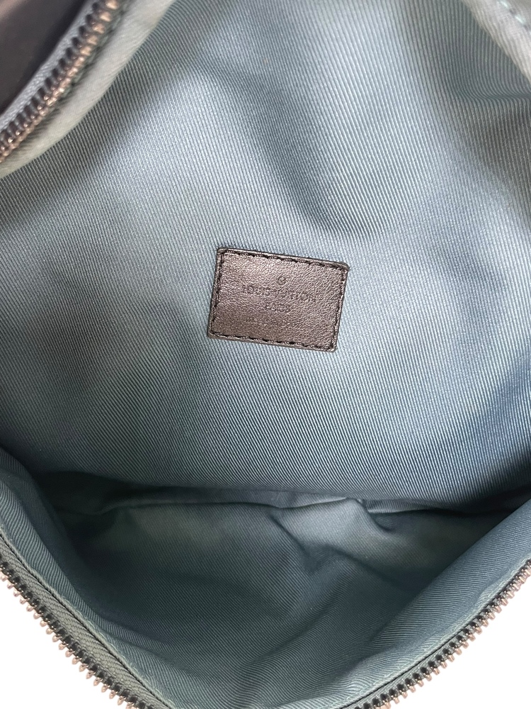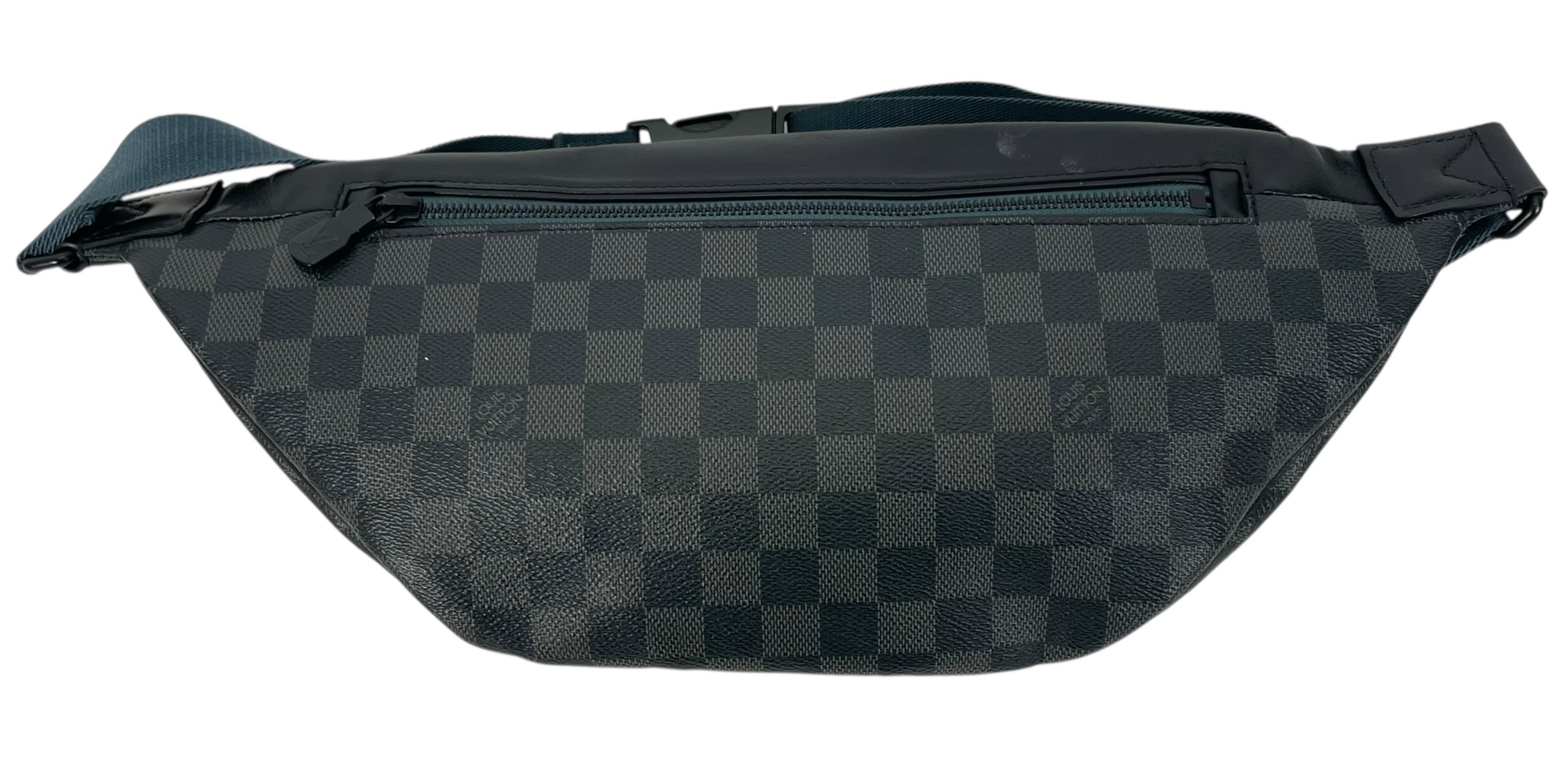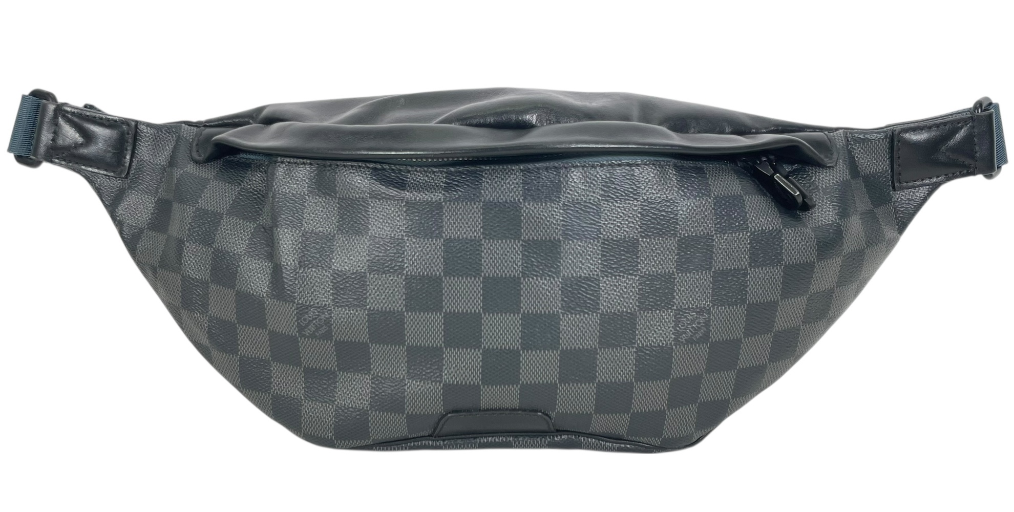 -The Louis Vuitton N40187 is the Discover BumBag in Damier Graphite canvas. This versatile bag for men can be worn around the waist as a belt bag, or across the chest or shoulder for a more casual, modern look. It features a main compartment with a secure zip closure and an additional zippered pocket on the front and back for easy access to small essentials.