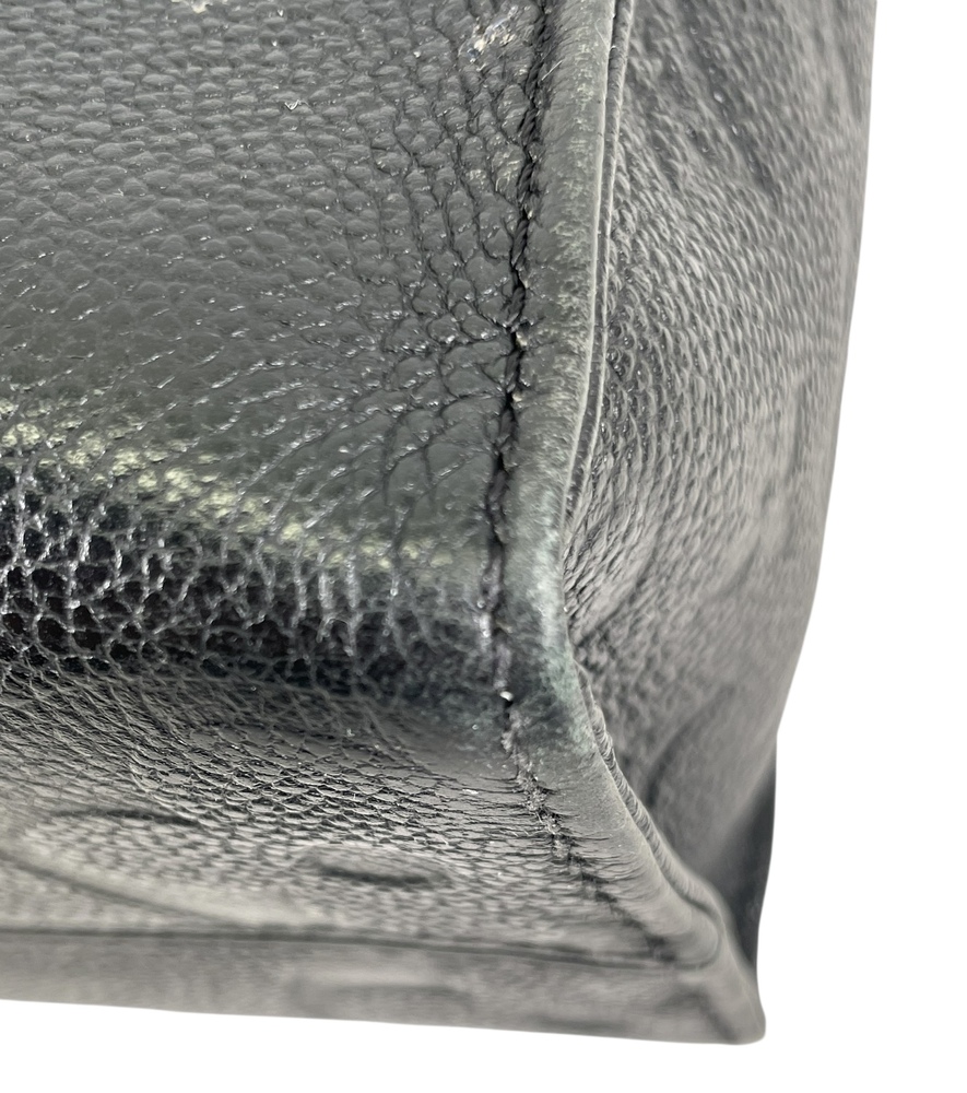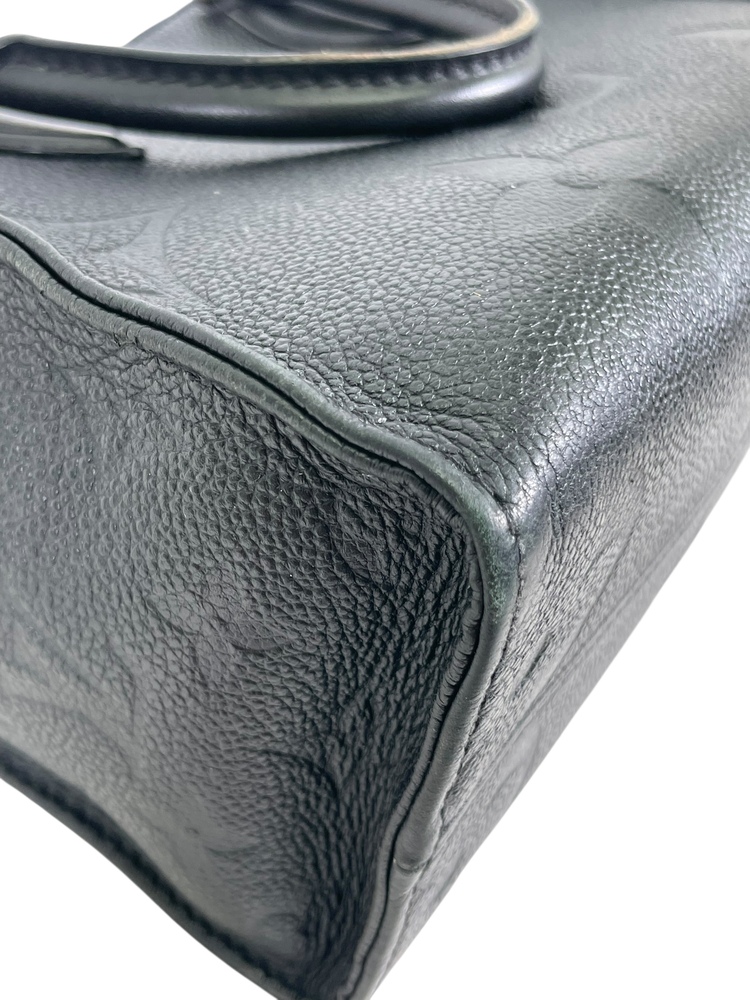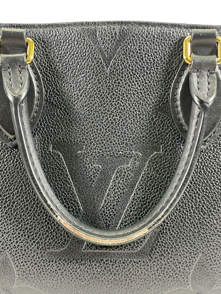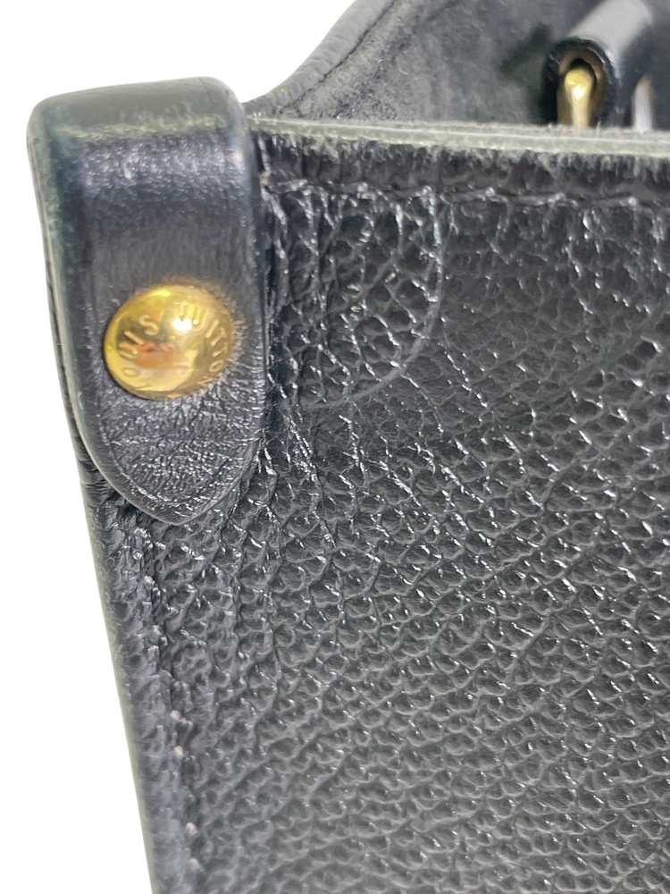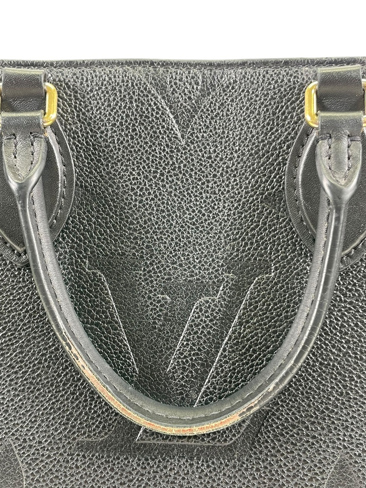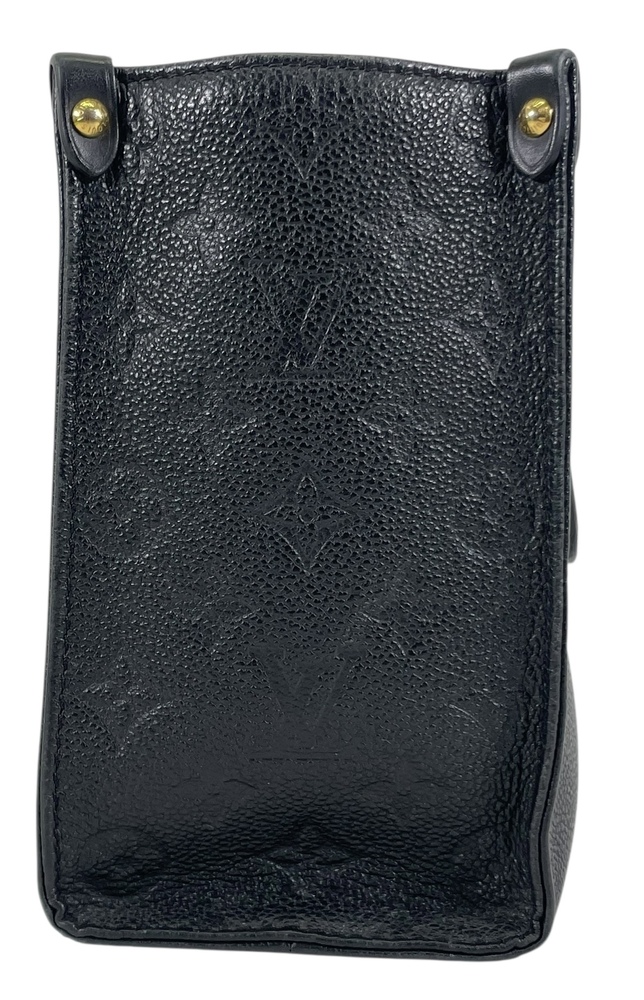 -Inspired by Louis Vuitton’s famous Sac Plat from 1968, the Onthego PM tote is fashioned in Monogram Empreinte leather, embossed with a subtle embossed Giant Monogram pattern. This smaller version of the original Onthego fits essentials such as an iPad Mini. Articulated top handles and an adjustable removable strap offer a variety of carry options.