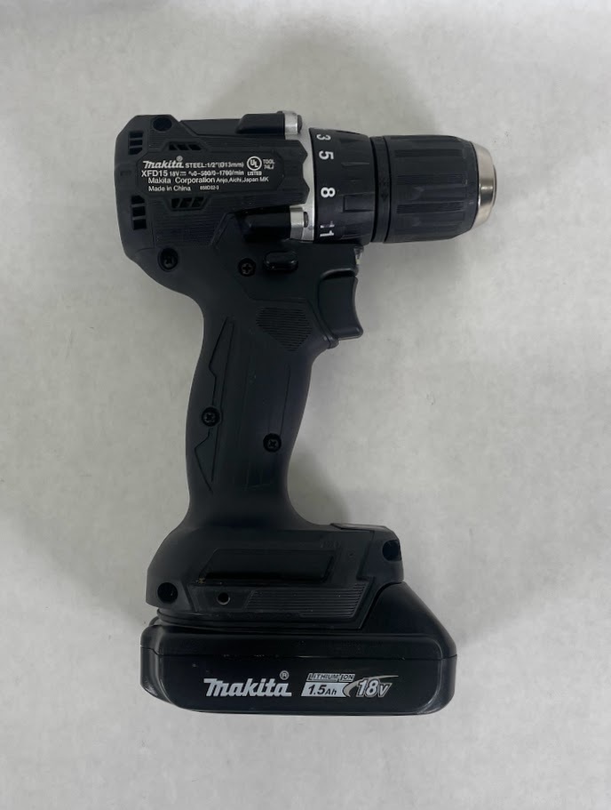 The Makita XFD15 18 Volt Cordless Drill Driver has been tested, cleaned and is ready for sale. Includes Makita XFD 15 Cordless Drill with Makita BL1815N 1.5 Ah Lithium Ion battery. The Makita XFD15 Drill and battery combo are in Very Good working and cosmetic condition.
