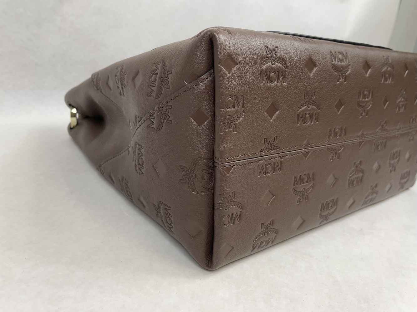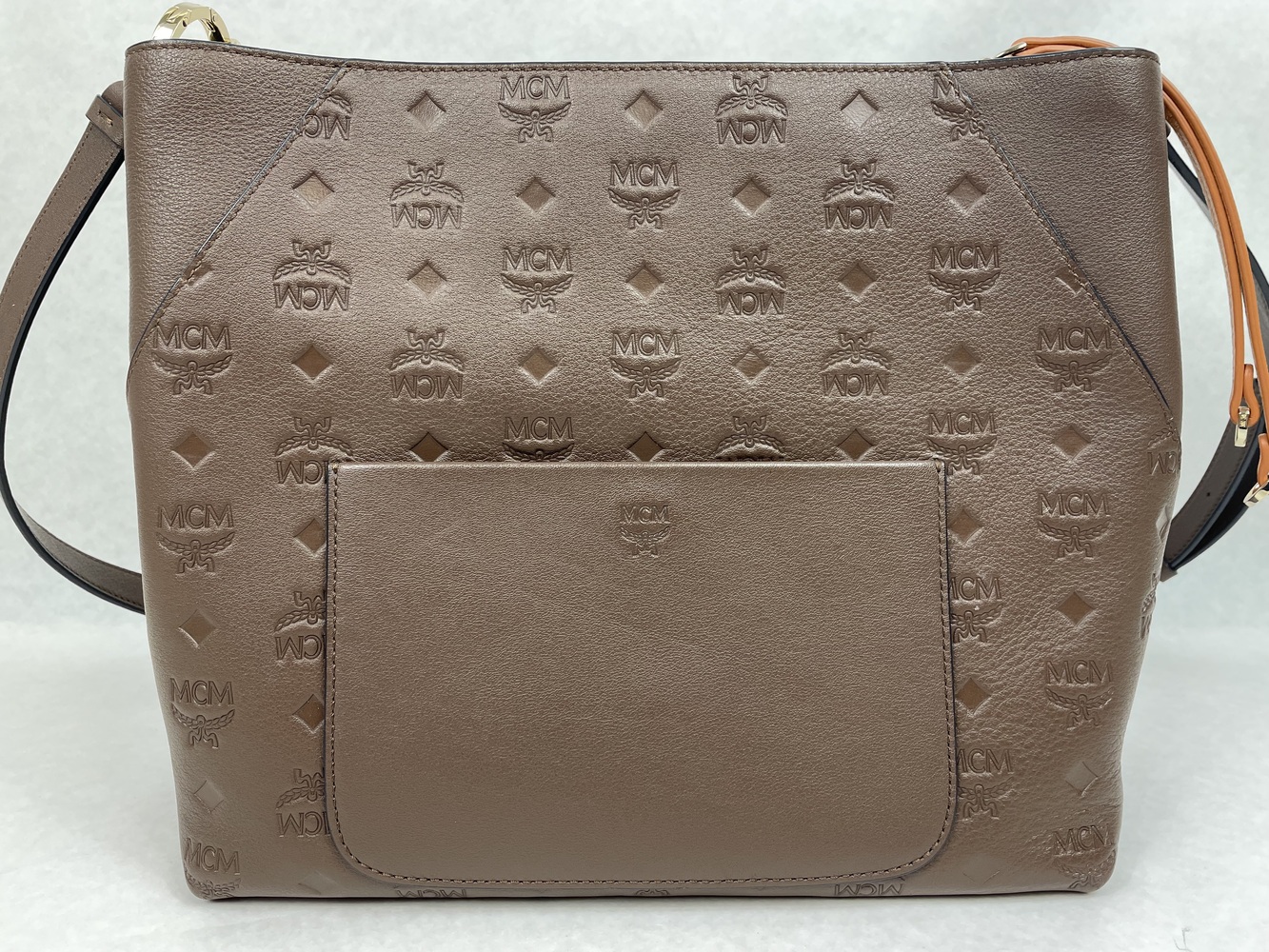 MCM Calfskin Ottomar Large Klara Monogram Hobo Handbag Brown