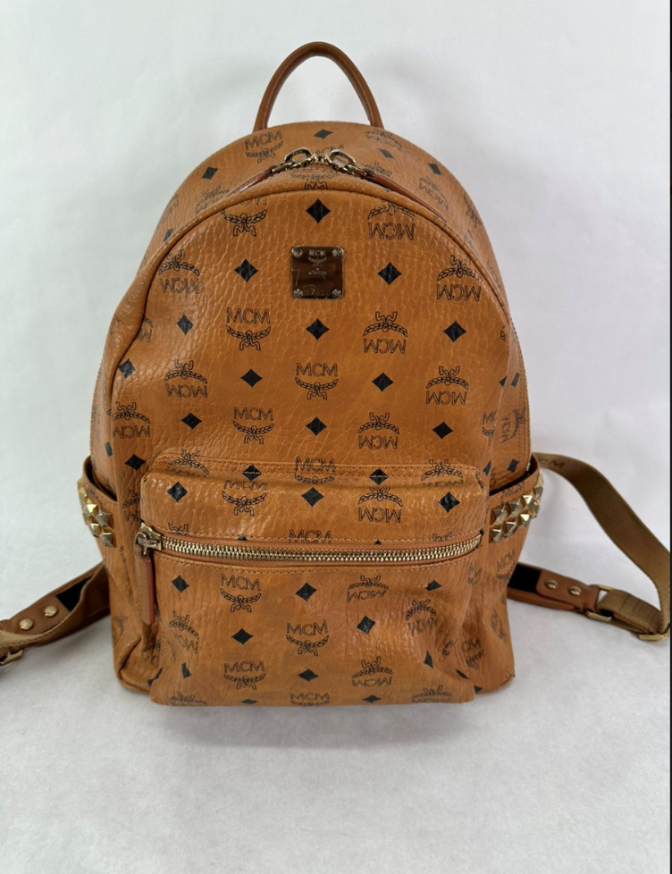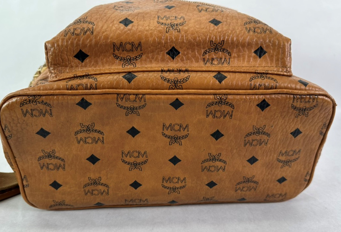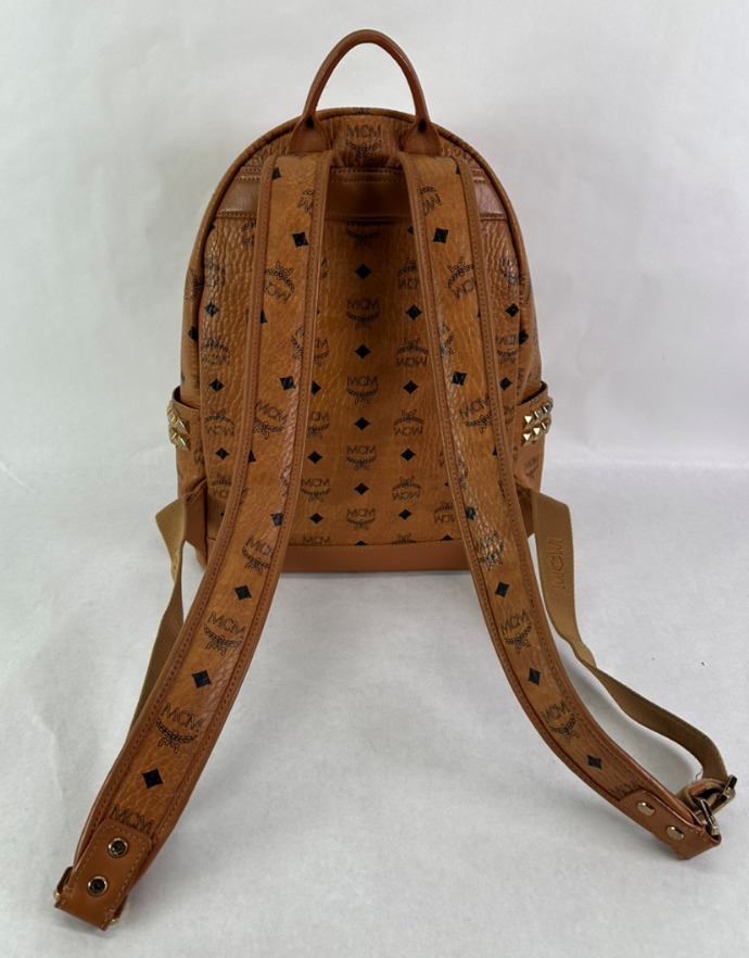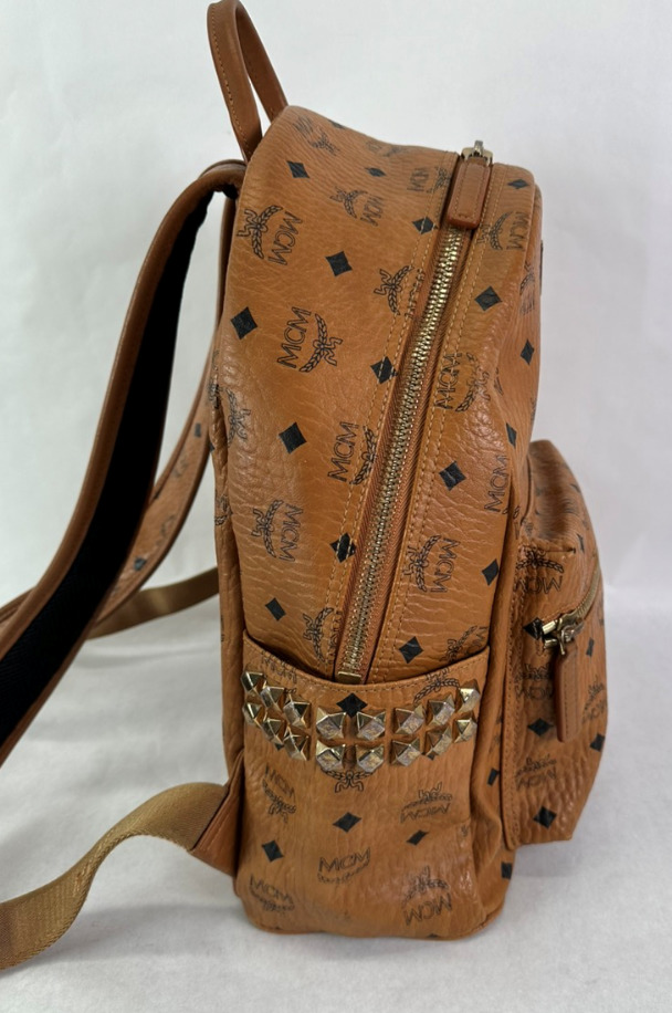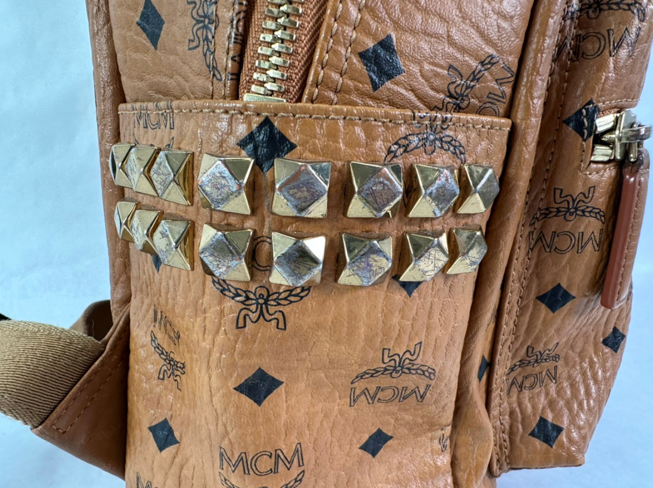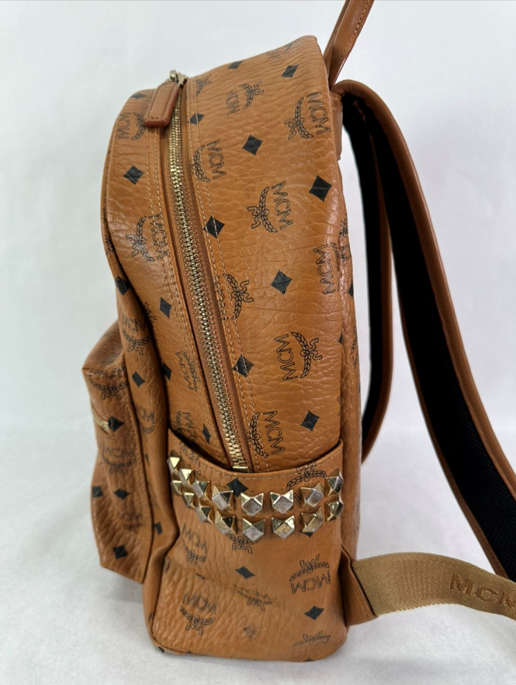 MCM Stark Side Stud Visetos Medium Backpack Cognac