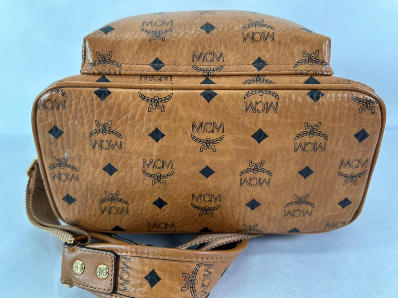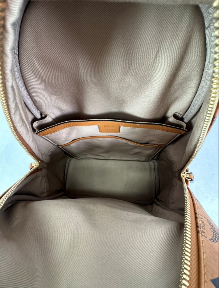 -This Bagpack is in very good pre-owned condition, showing minimal sings of wear, worn on all four corners, ni interior stains or umplesent odors.