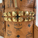 -Crafted from signature Italian Visetos, the small Stark backpack is enriched by smooth nappa leather accents in classic cognac. Pyramid stud embellishments frame the iconic silhouette for a touch of gilded brilliance.