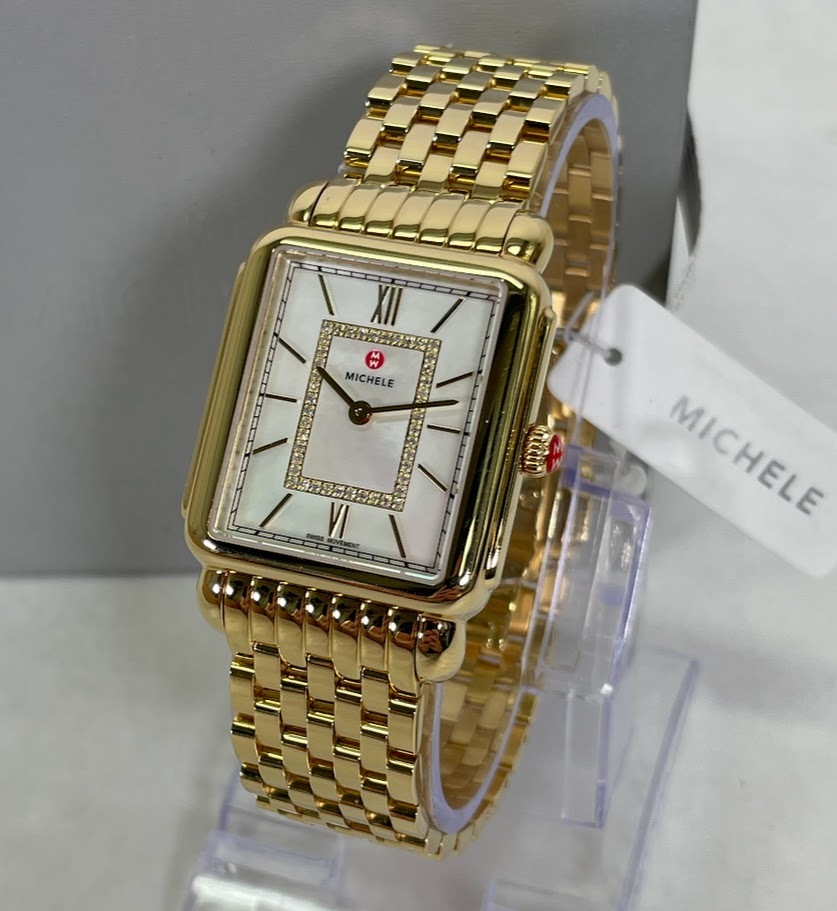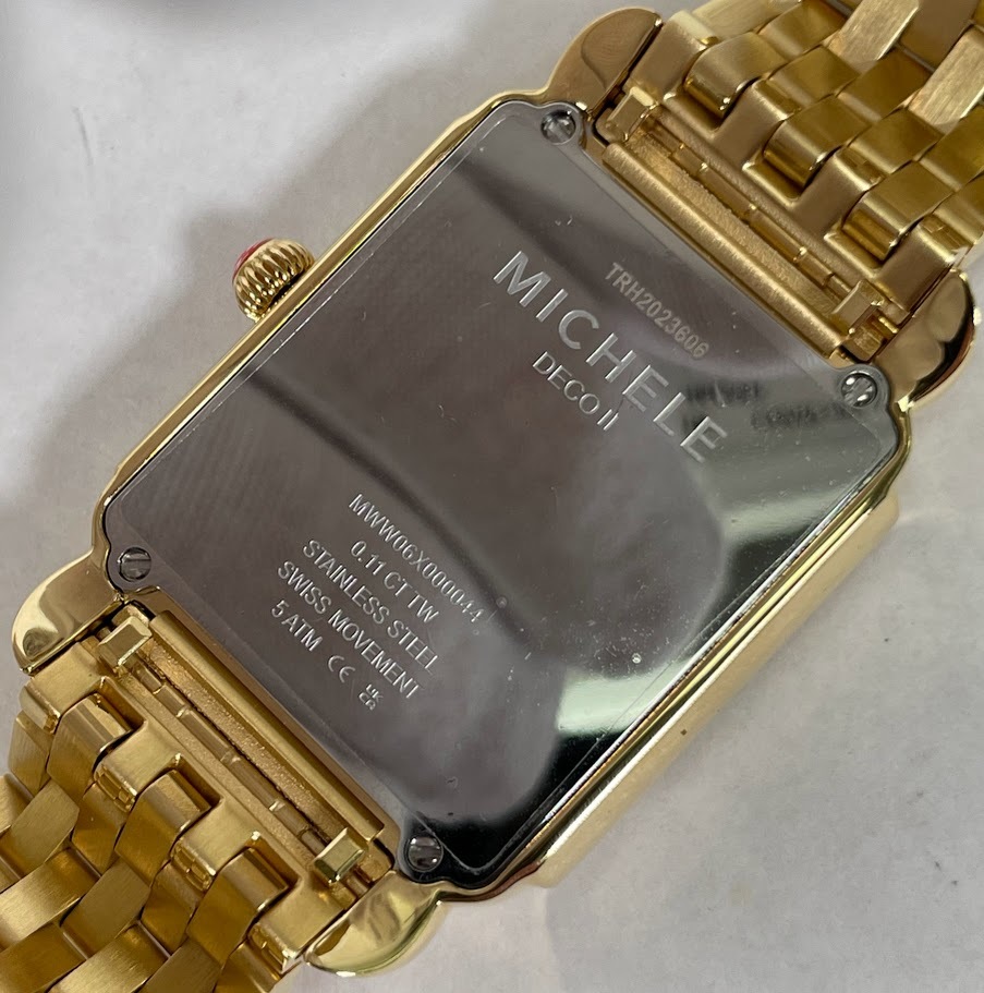 The Michele Deco II for sale is preowned but in like new condition. There are no major signs of wear to note. It has been fully tested and is in perfect working order. Included is the original box and full bracelet.