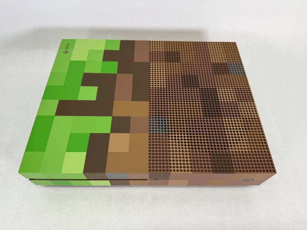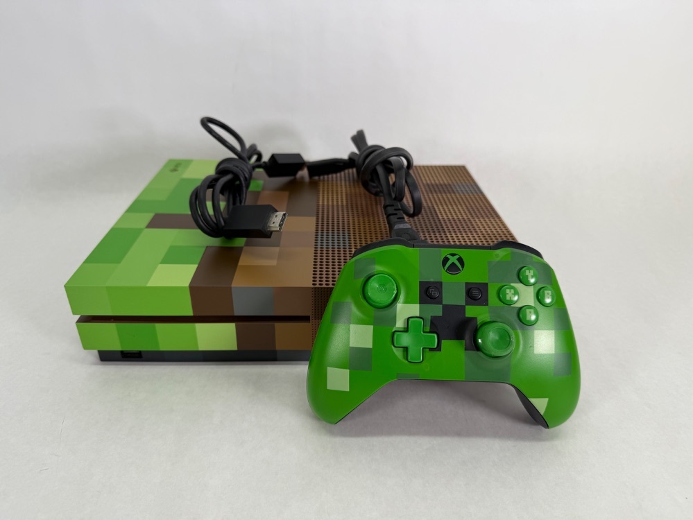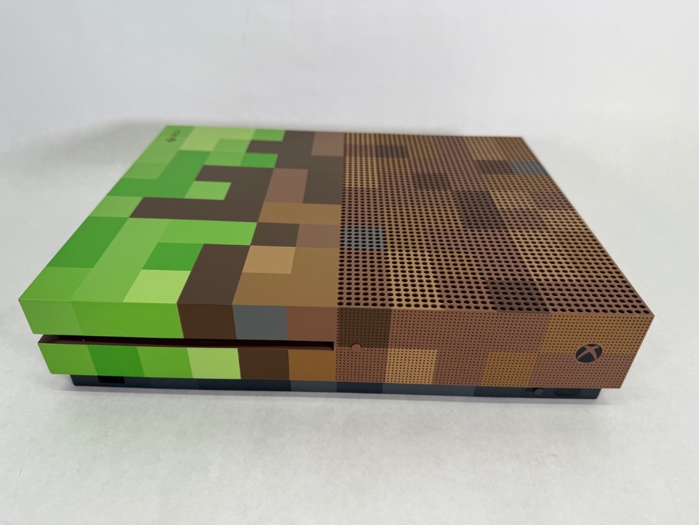 Limited Edition Microsoft Xbox One S 1TB console features a unique Minecraft-themed design, offering expansive storage and immersive gaming experience.