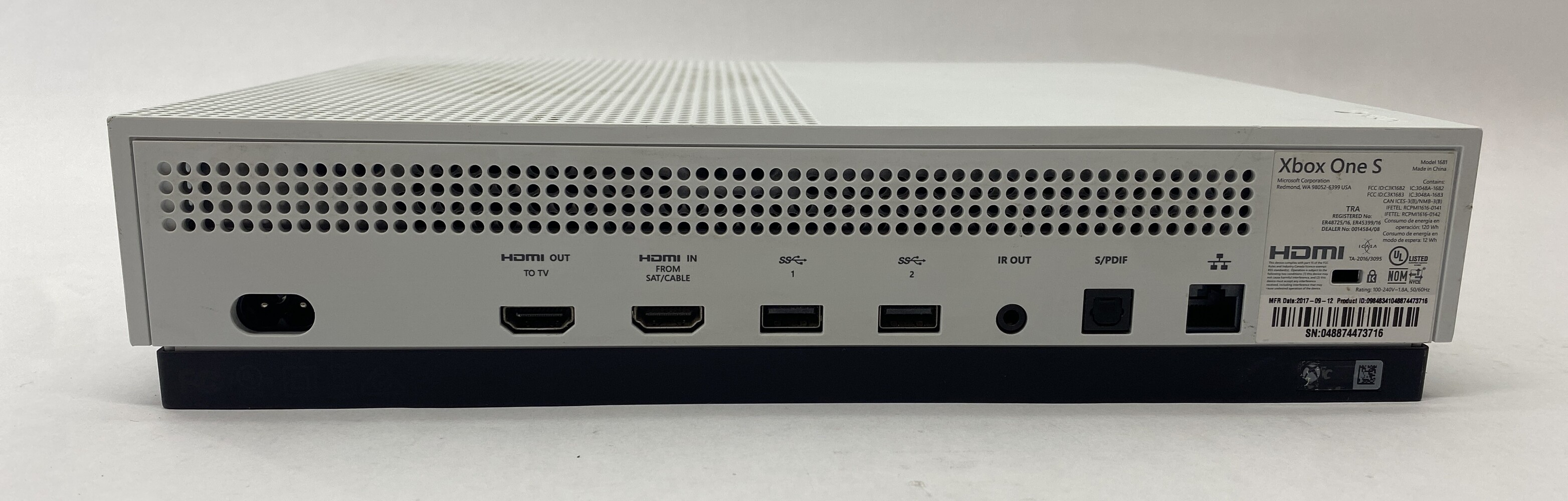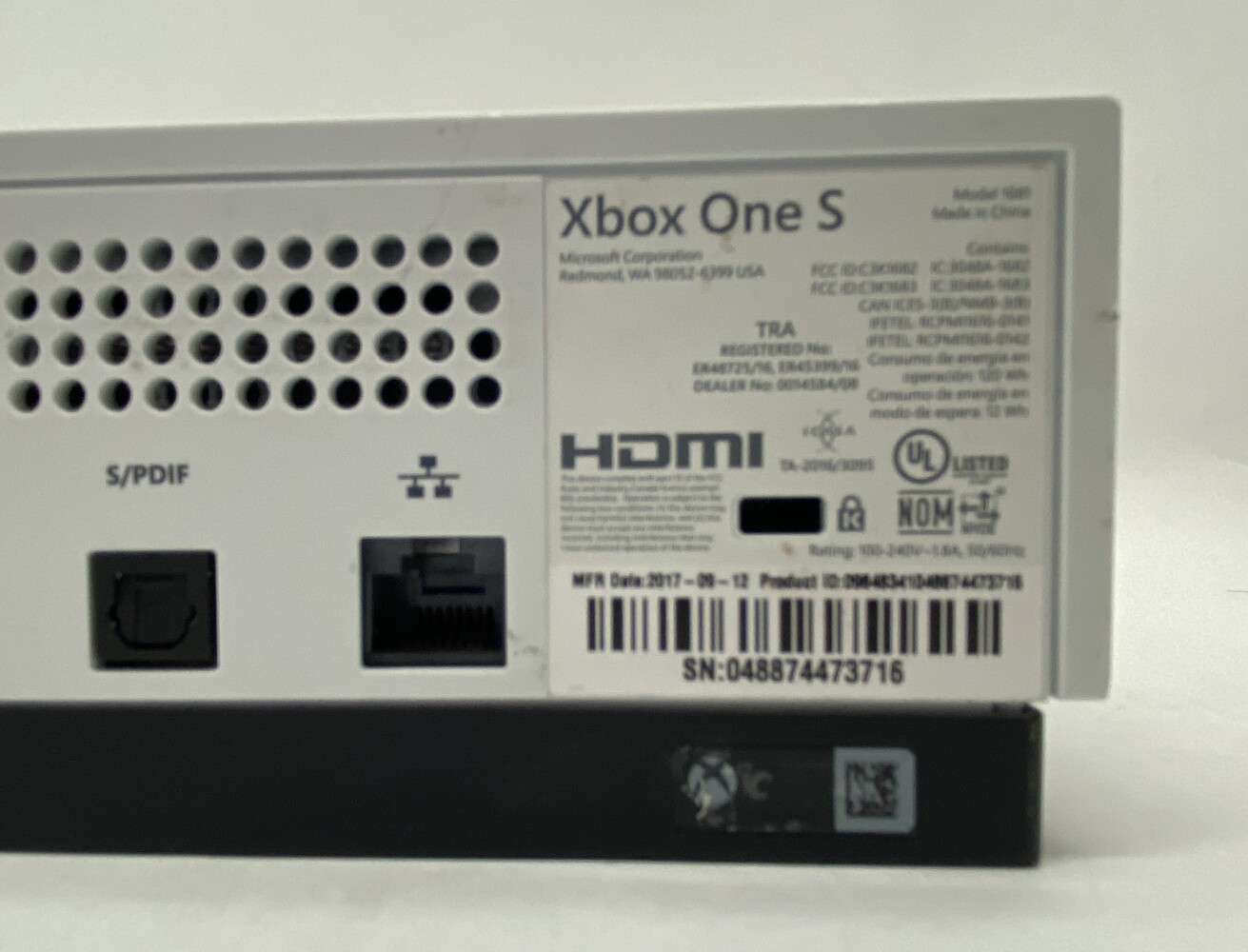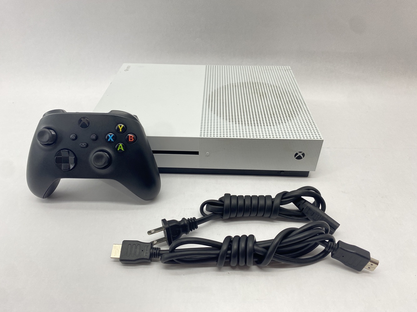 Microsoft Xbox One S 1681 Console. 500GB Storage. Previously used but tested and functions as intended. Some surface scratches on the top and sides. Comes with one controller. Check photos for exact product conditions.