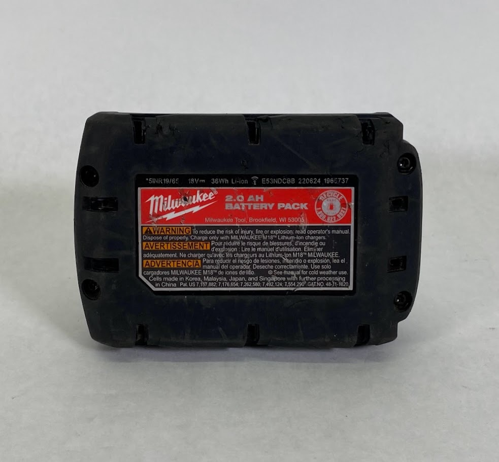 The Milwauke48-11-1820 Battery has been tested, cleaned and ready for sale. Includes Battery only. The Milwaukee 2.0Ah 48-11-1820 Battery is in good working and cosmetic condition.