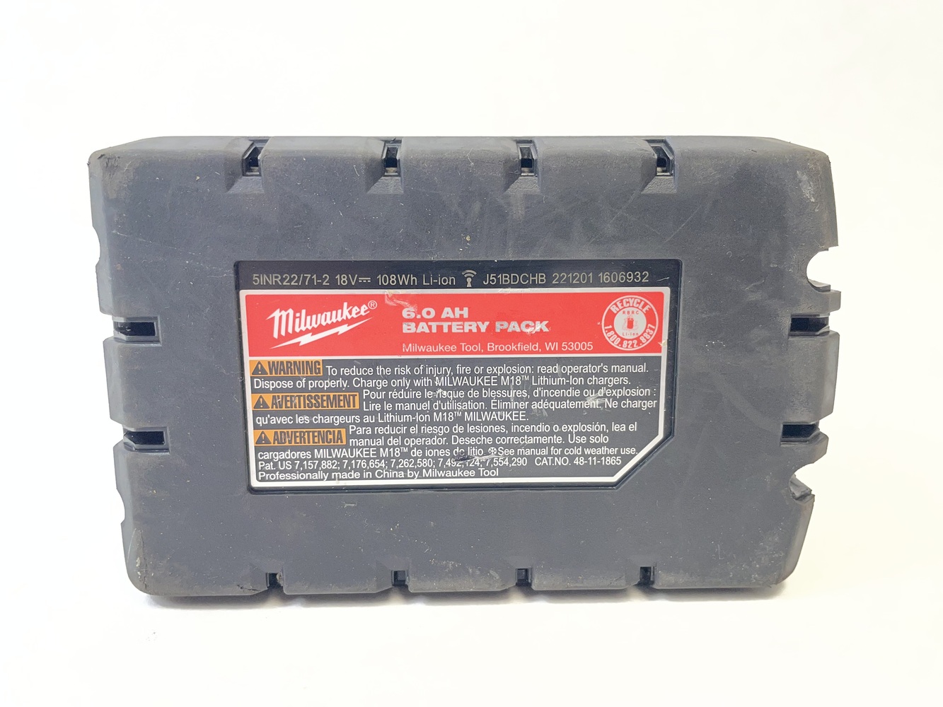 Milwaukee 48-11-1865 M18 18V XC6.0 High Output Battery