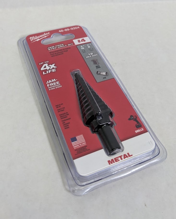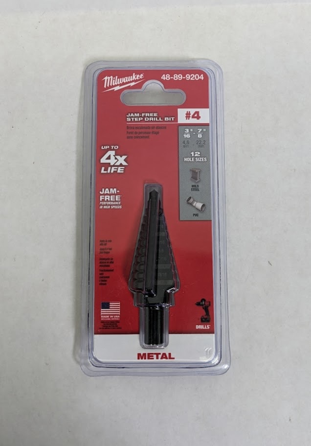 The Milwakee 48-89-9204 #4 JAM-FREE Step Bit is sealed and in new condition.