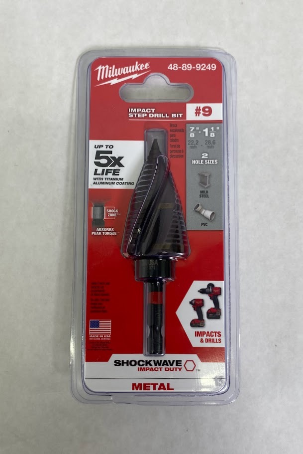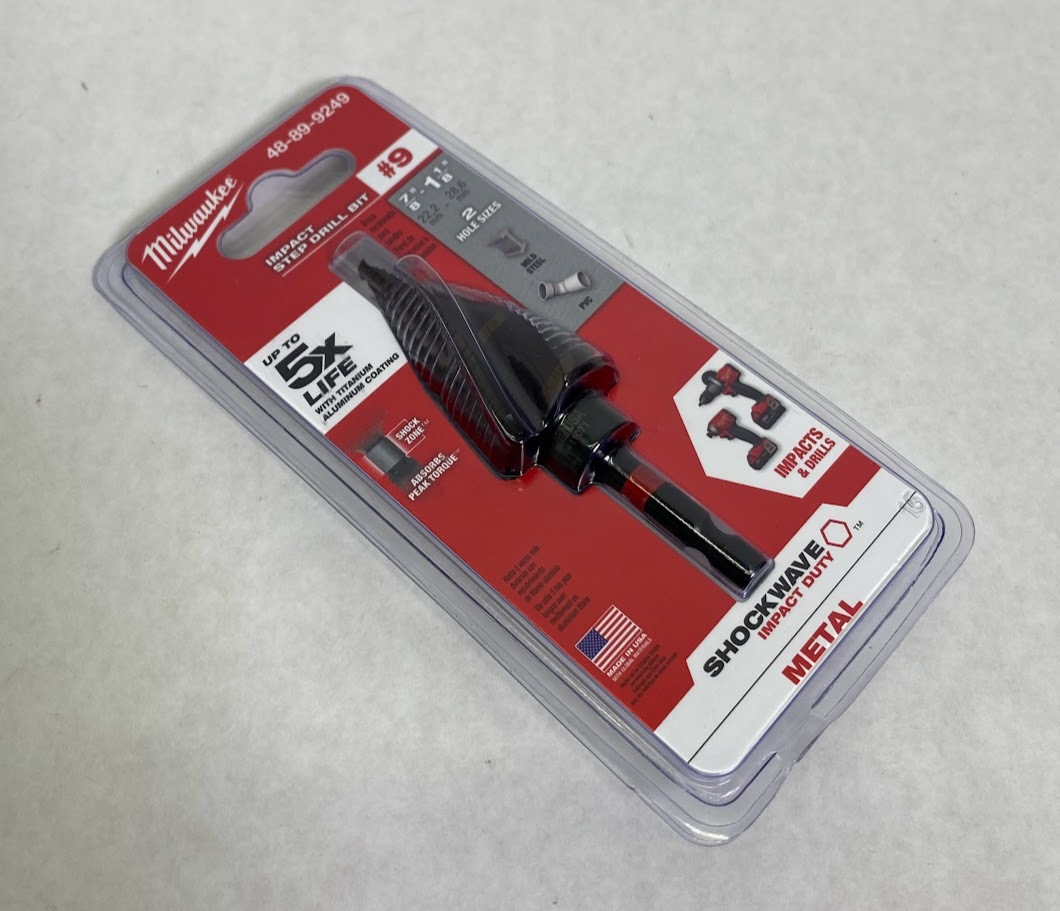 The Milwaukee 48-89-9249 #9 Step Bit is in New condition and sealed in original packaging.