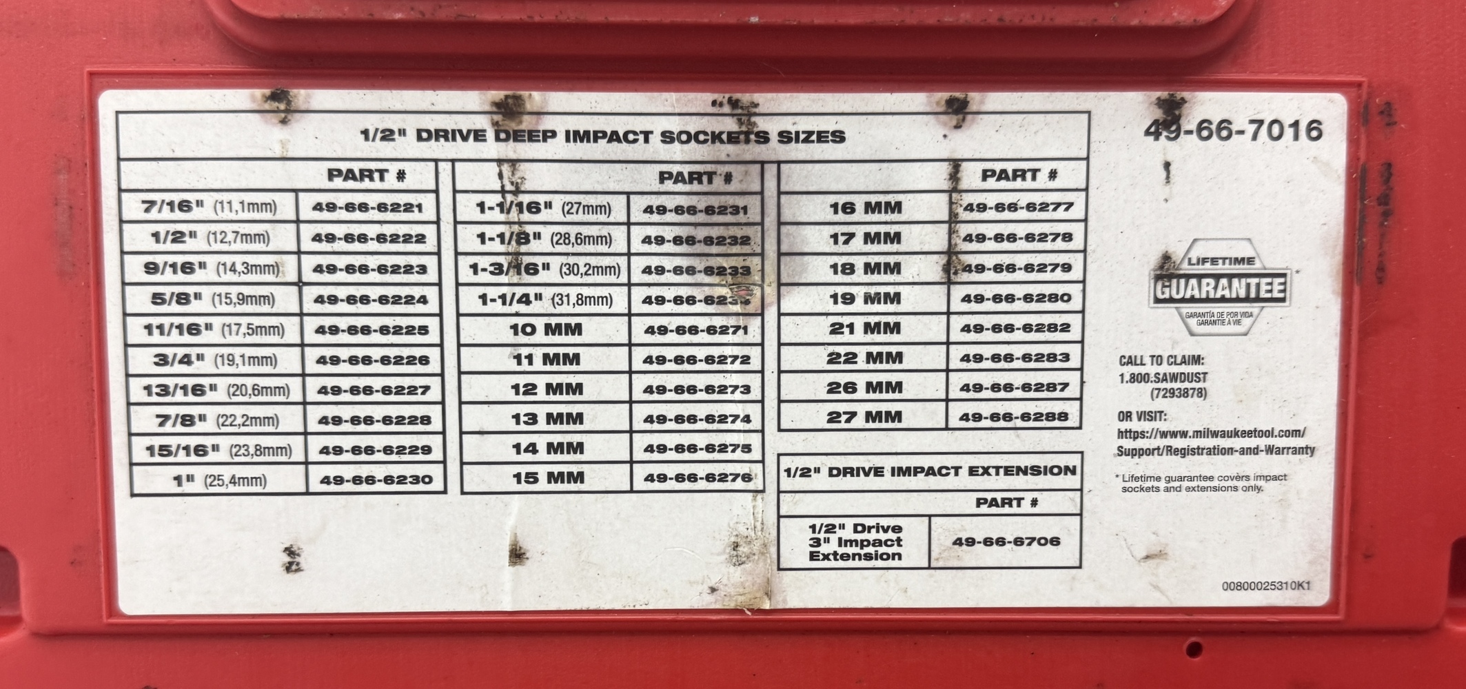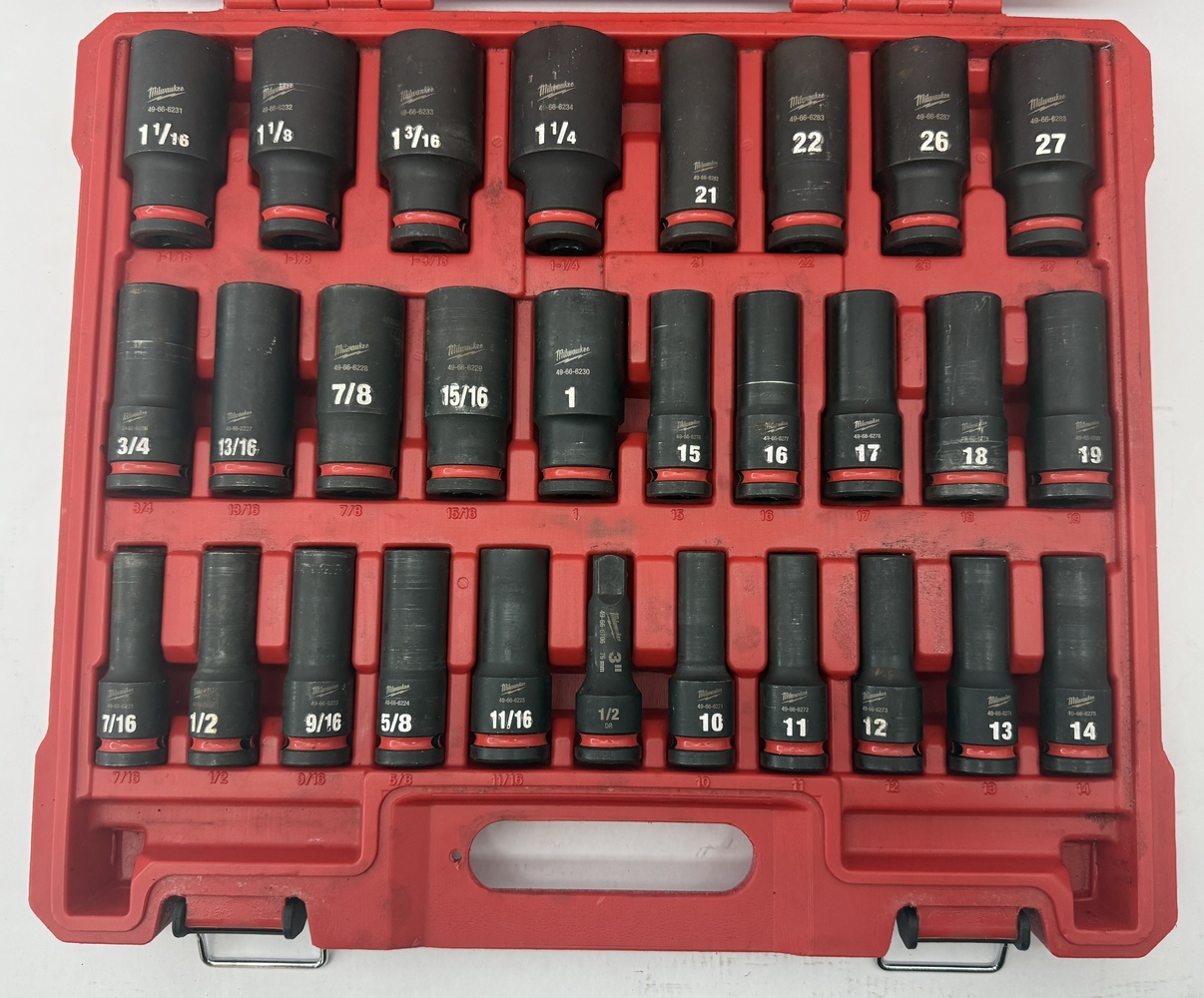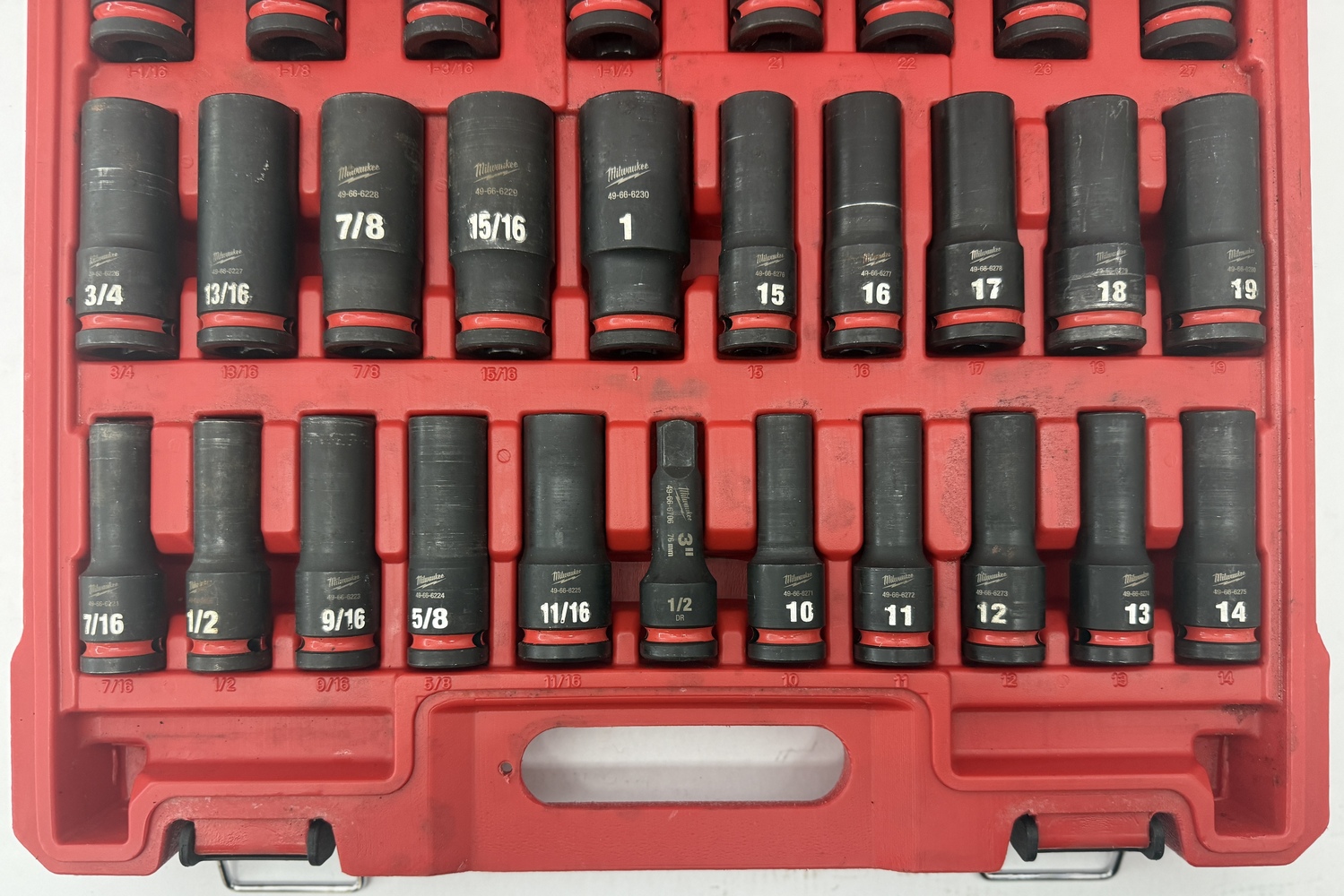 Milwaukee 49-66-7016 SHOCKWAVE Impact Duty 1/2" Drive SAE & Metric Deep 6 Point Socket Set