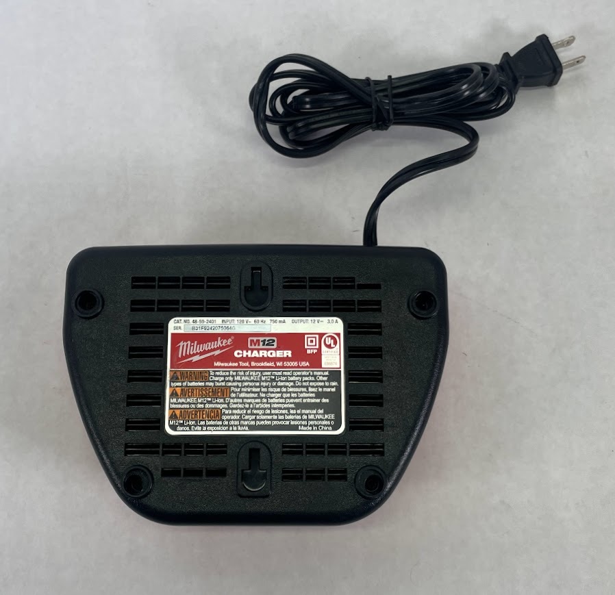 The Milwaukee 48-59-2401 M12 Battery Charger has been tested, cleaned, and is ready for sale. Includes Milwaukee Charger Only. The Milwaukee 48-59-2401 M12 Battery Charger is in Very Good working and cosmetic condition.