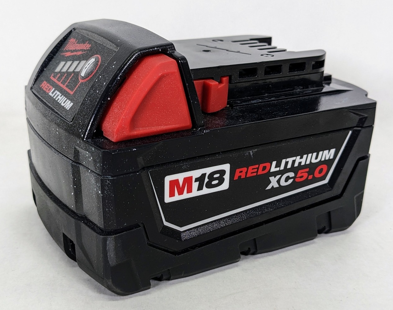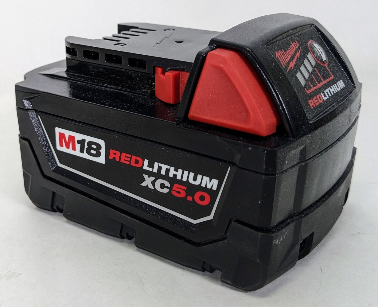 The Milwaukee M18 5Ah battery for sale is pre-owned but in excellent working condition. The battery shows very minor visible signs of use/wear. Fully charged and ready to go!