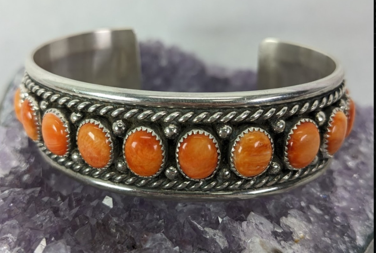Navajo C. Charley Orange Jasper Cuff Native American 48.80gm